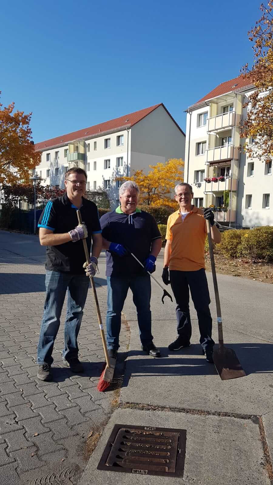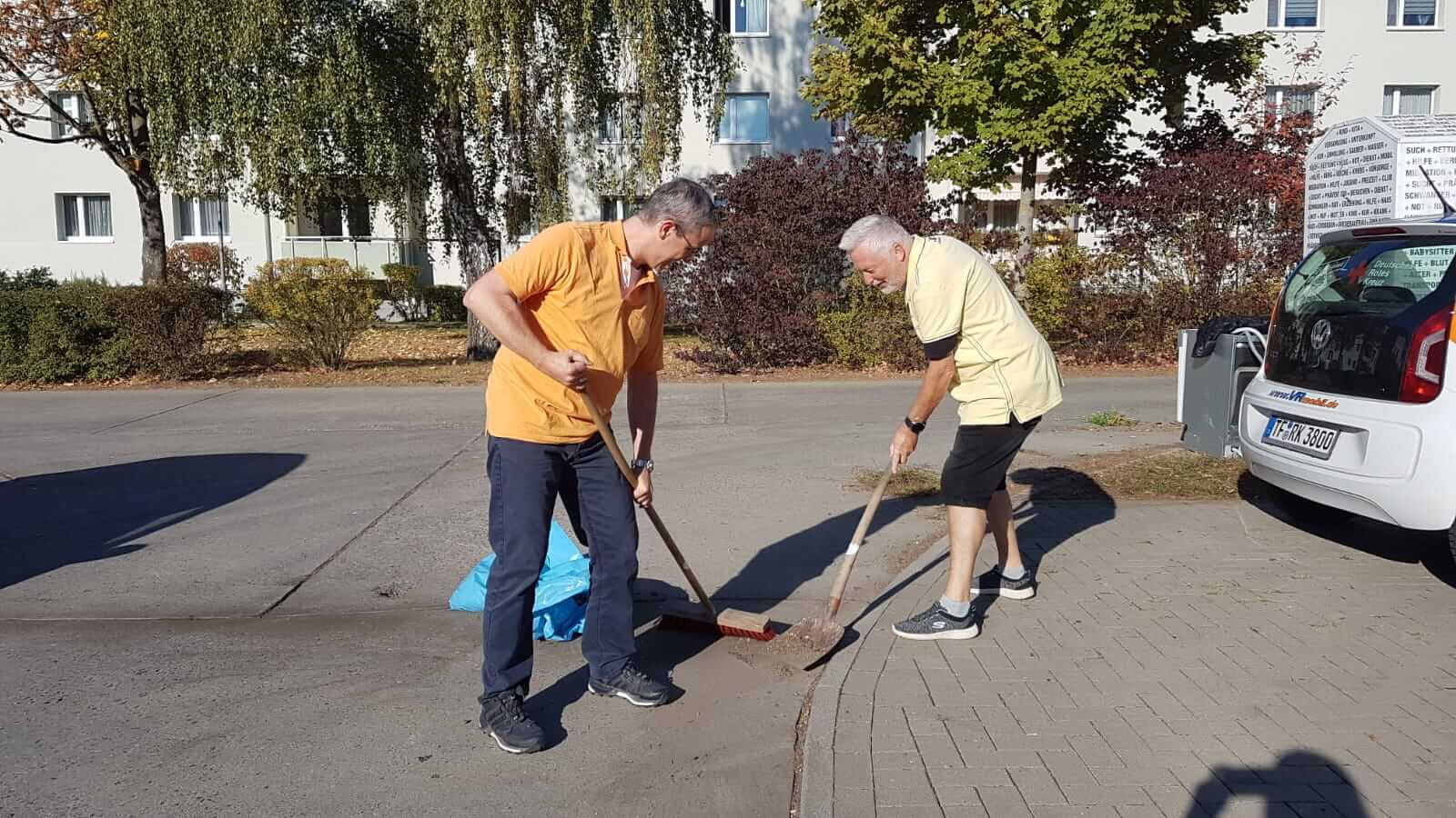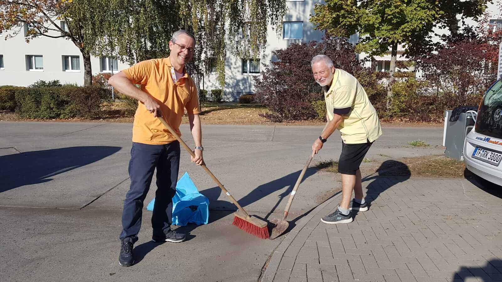 Zwar zeigt das Thermometer immer noch keine herbstlichen, geschweige denn winterlichen Temperaturen an, trotzdem wird vielerorts schon für den Winter Vorsorge getroffen. Mit großer Freude konnten die Vorsitzende des Seniorenbeirates Dr. Vera Paul und der Bürgermeister Andreas Igel am vergangenen Samstag viele freiwillige ehrenamtliche Helferinnen und Helfer am Parkplatz vor dem Kieztreff des DRK zum ersten Herbstputz im Quartier begrüßen.