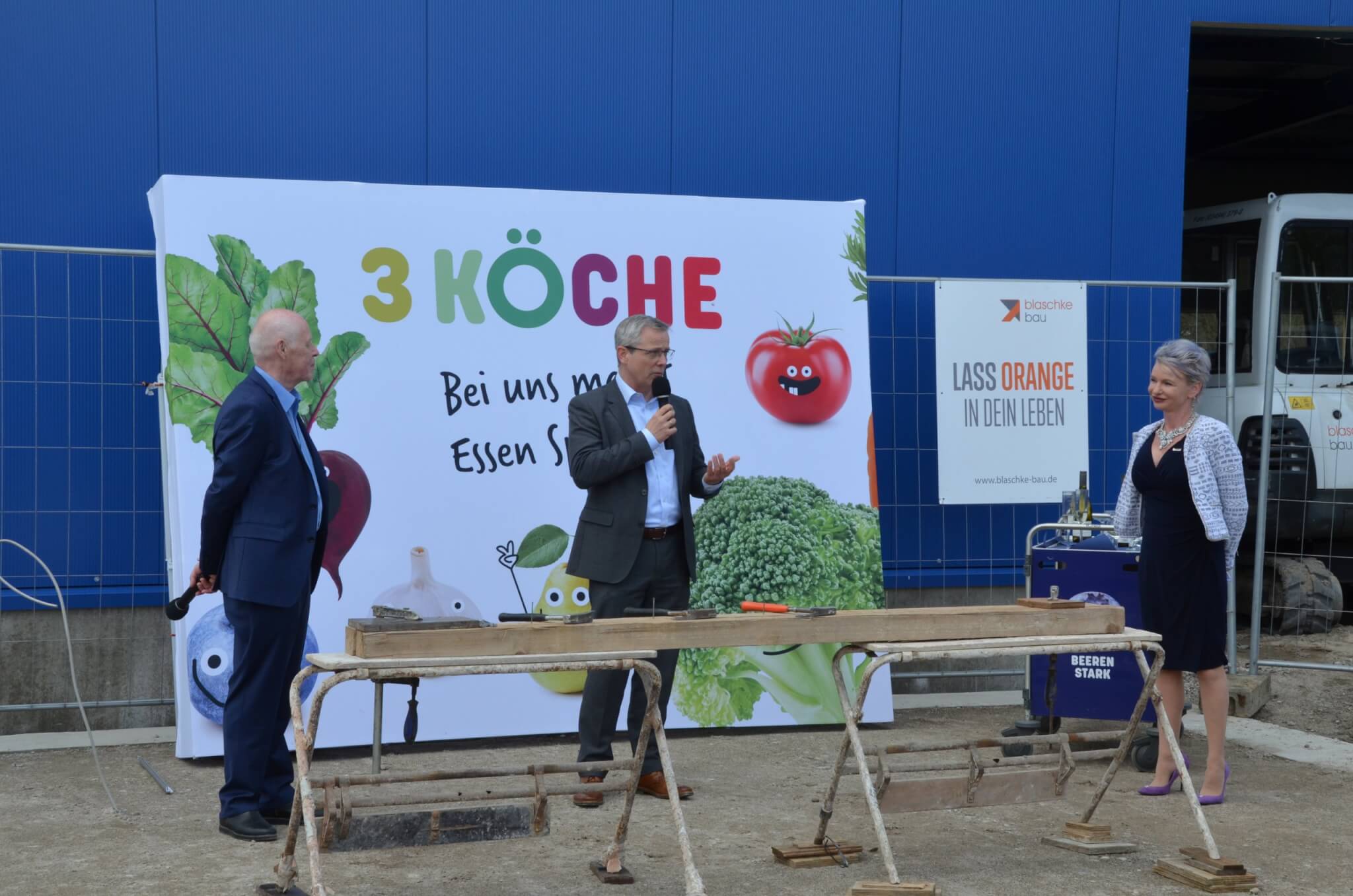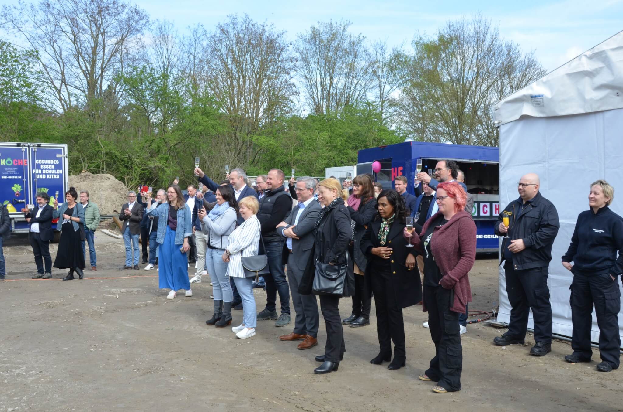 Genau 20 Jahre nach der Unternehmensgründung feierte das Unternehmen 3 Köche mit einem großen Fest zum einen seinen Firmengeburtstag, zum anderen das Richtfest seiner neuen Produktionsküche im „Brandenburg Park“ in Genshagen. Zukünftig werden rund 50 Mitarbeitende am neuen Standort täglich 10.000 Mahlzeiten für Kitas und Schulen produzieren.