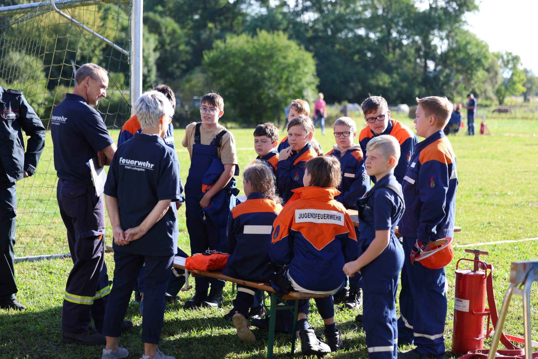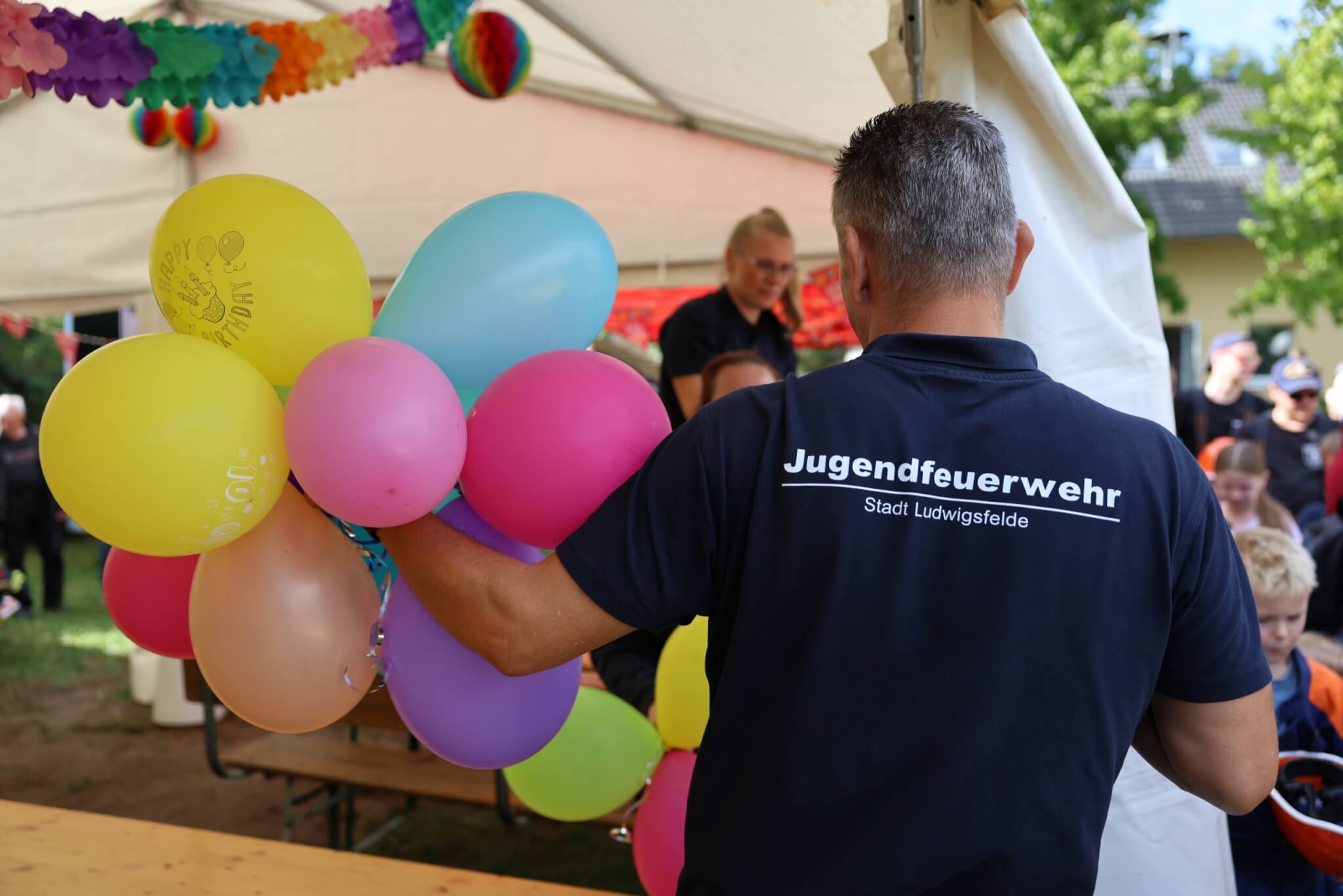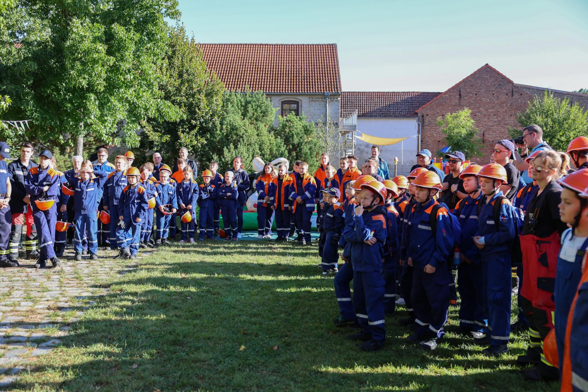 Hinter dem Feuerwehrgerätehaus und auf dem anliegenden Sportplatz im Ortsteil Wietstock wurde ein bisher einmaliges Event gefeiert. Am 23.09.2023 lud die Stadtjugendwehrführung alle Kinder- und Jugendfeuerwehren der Stadt Ludwigsfelde zu einer gemeinsamen Jubiläumsfestivität ein. Anlässlich der zurückliegenden Jubiläen der Jugendfeuerwehren Ludwigsfelde (30-jähriges Jubiläum), Ahrensdorf (25-jähriges Jubiläum), Wietstock (10-jähriges Jubiläum) und Genshagen (10-jähriges Jubiläum) wurden deren Gründungsgeburtstage einheitlich in einem feierlichen Rahmen gewürdigt. Die in den vergangenen Jahren außerordentlich geleistete Kinder- und Jugendfeuerwehrarbeit - unter anderem die zahlreiche Gewinnung und Vorabausbildung von dringend benötigten Nachwuchskräften für die Einsatzabteilung - fand folglich eine gebührende Anerkennung durch die Stadtjugendwehrführung, die Stadtwehrführung, dem Vorstand des Fördervereines der Freiwilligen Feuerwehr Ludwigsfelde sowie dem Bürgermeister der Stadt Ludwigsfelde.