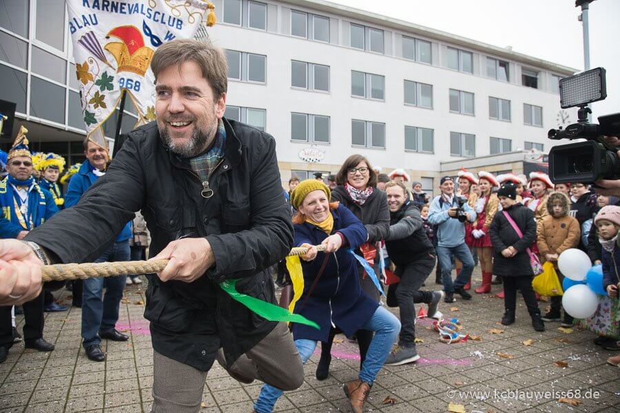 Foto: (KC Blau-Weiß) Als erster Vertreter des Bürgermeisters verteidigte Christian Großmann im November 2019 das Rathaus gegen den Karnevalsverein.