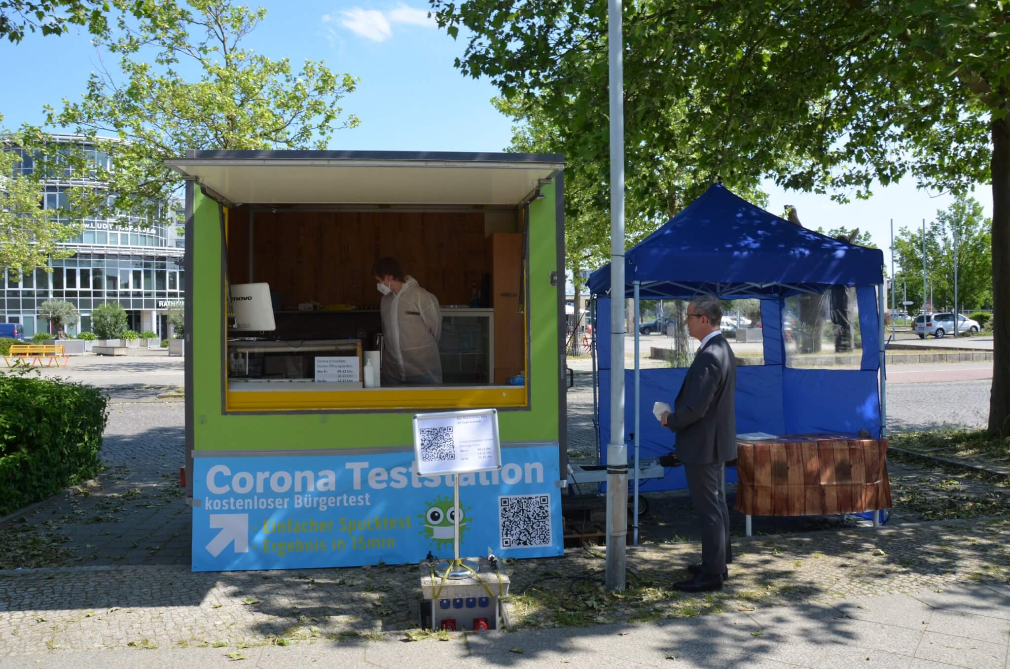 Die Öffnungszeiten der Teststellen und den Link zur Terminbuchung können Sie der Infobox rechts entnehmen.
