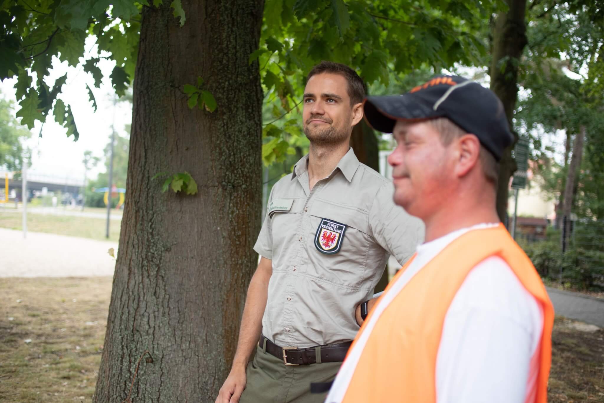 Lukas Rolle, als Revierförster seit zehn Monaten für das Gebiet in Ludwigsfelde verantwortlich, begutachtete die Arbeiten am Freitag persönlich und beruhigt alle, die sich um das Grün in Ludwigsfelde sorgen: „Aus forstrechtlicher Sicht ist alles in Ordnung und im Einklang mit dem Landeswaldgesetz. Viele Kiefern sind bereits jetzt aufgrund der klimatischen Bedingungen der letzten Jahre vertrocknet oder von Schädlingen, wie dem Blauen Kiefernprachtkäfer befallen. Auch aus diesen Gründen ist bei vielen Kiefern die Standsicherheit bei aufkommenden Stürmen wie zu Beginn des Jahres einfach nicht mehr gewährleistet.“
