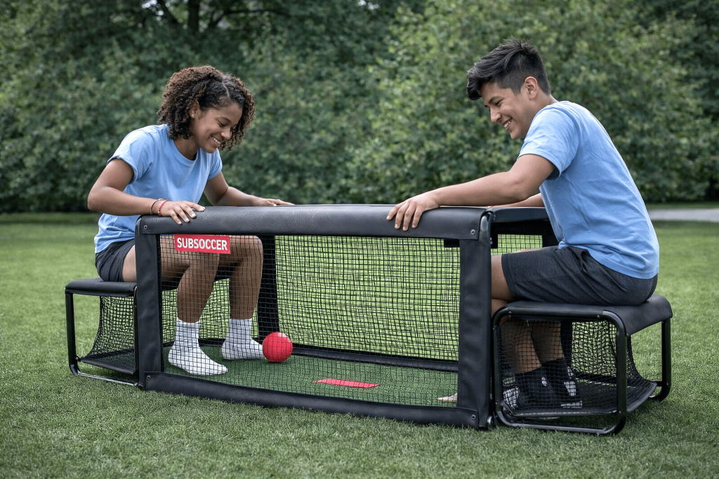 Ausgestattet mit mobilen Spielgeräten wie Sub-Soccer, Billard oder einem Boxautomaten entsteht ein