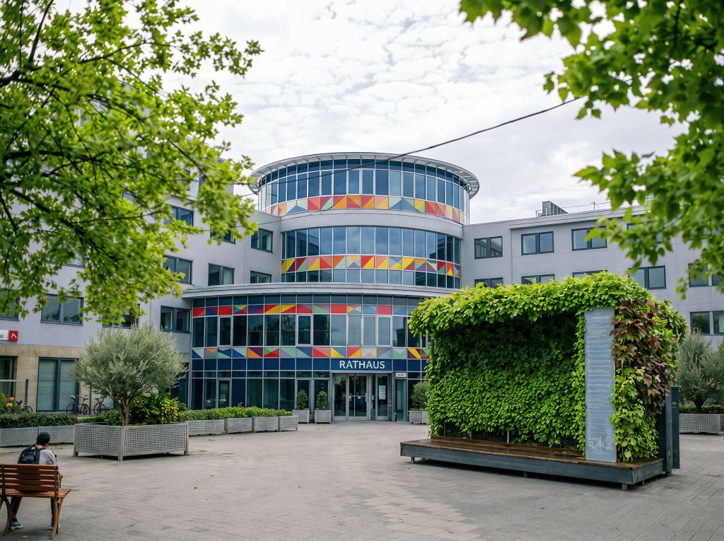 Auf dem Rathausplatz in Ludwigsfelde sollen mobile Grünwände aufgestellt werden. Sie bringen mehr Pflanzen und Natur auf den betonierten Platz.