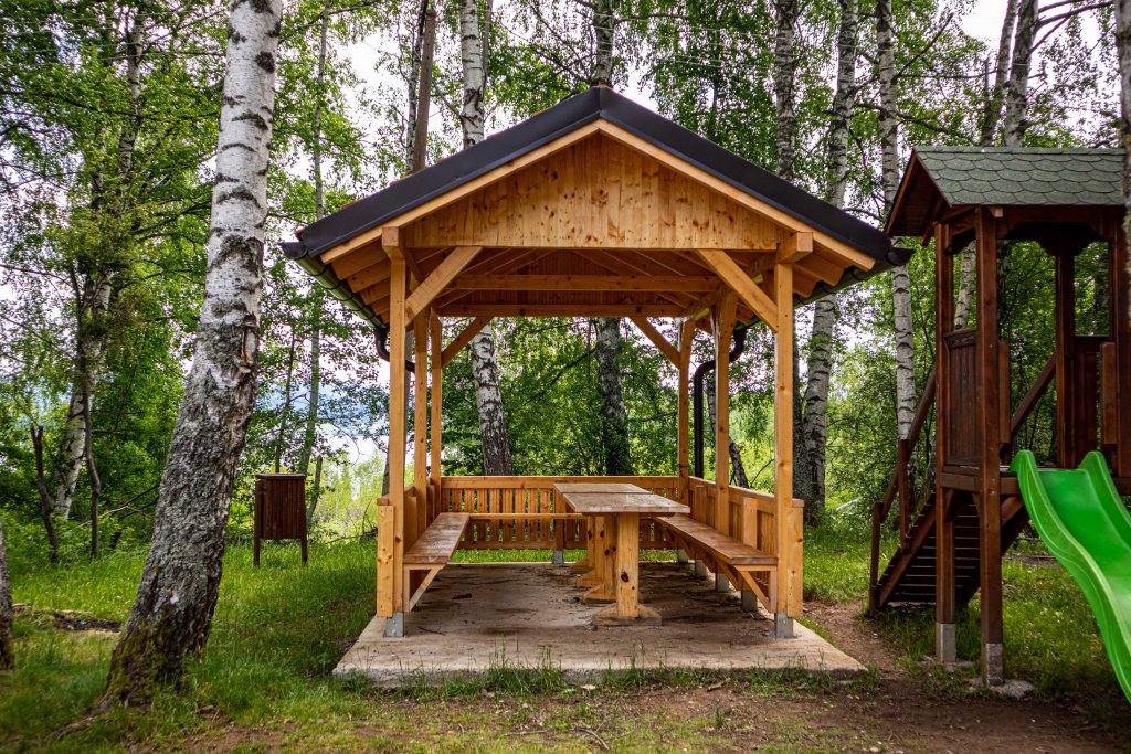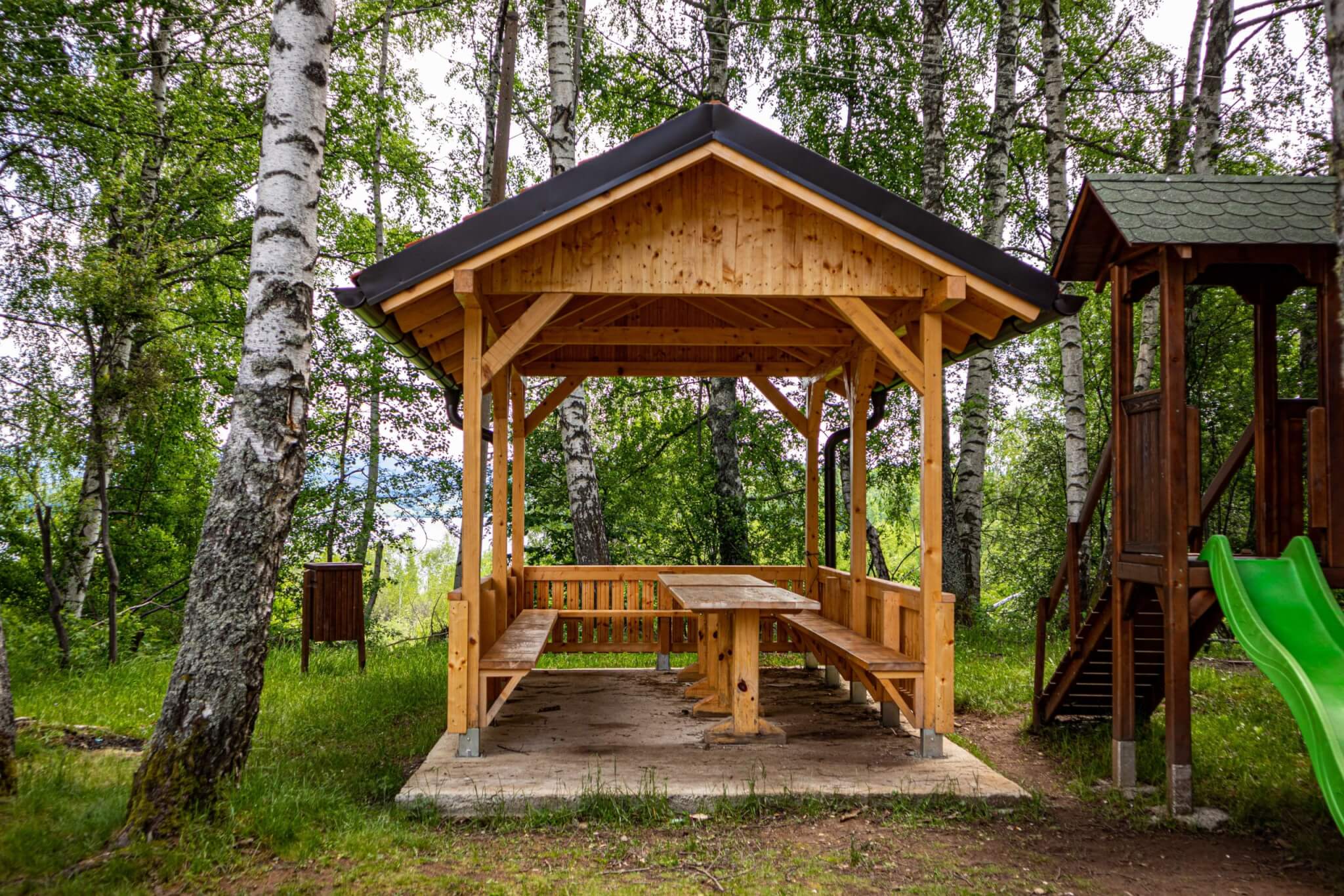 Überdachte Sitzgruppe für den Spielplatz Gröben