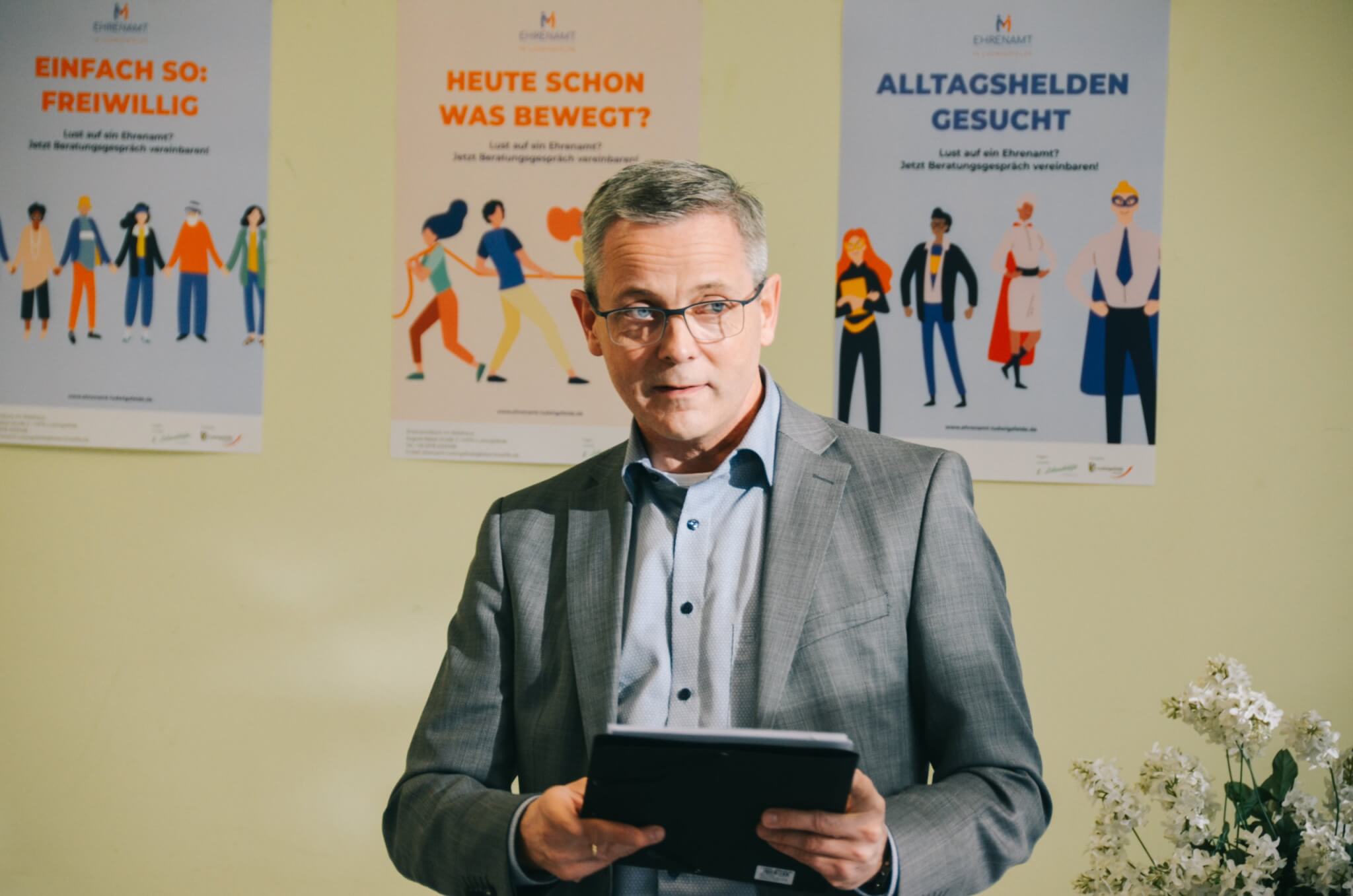 Heute Vormittag gab es im Waldhaus den offiziellen Startschuss für das Ehrenamtsbüro. Das Ehrenamtsbüro will Menschen, die sich ehrenamtlich engagieren möchten, und Vereine, Verbände und Initiativen, die freiwillige Helferinnen und Helfer suchen, zusammenbringen.