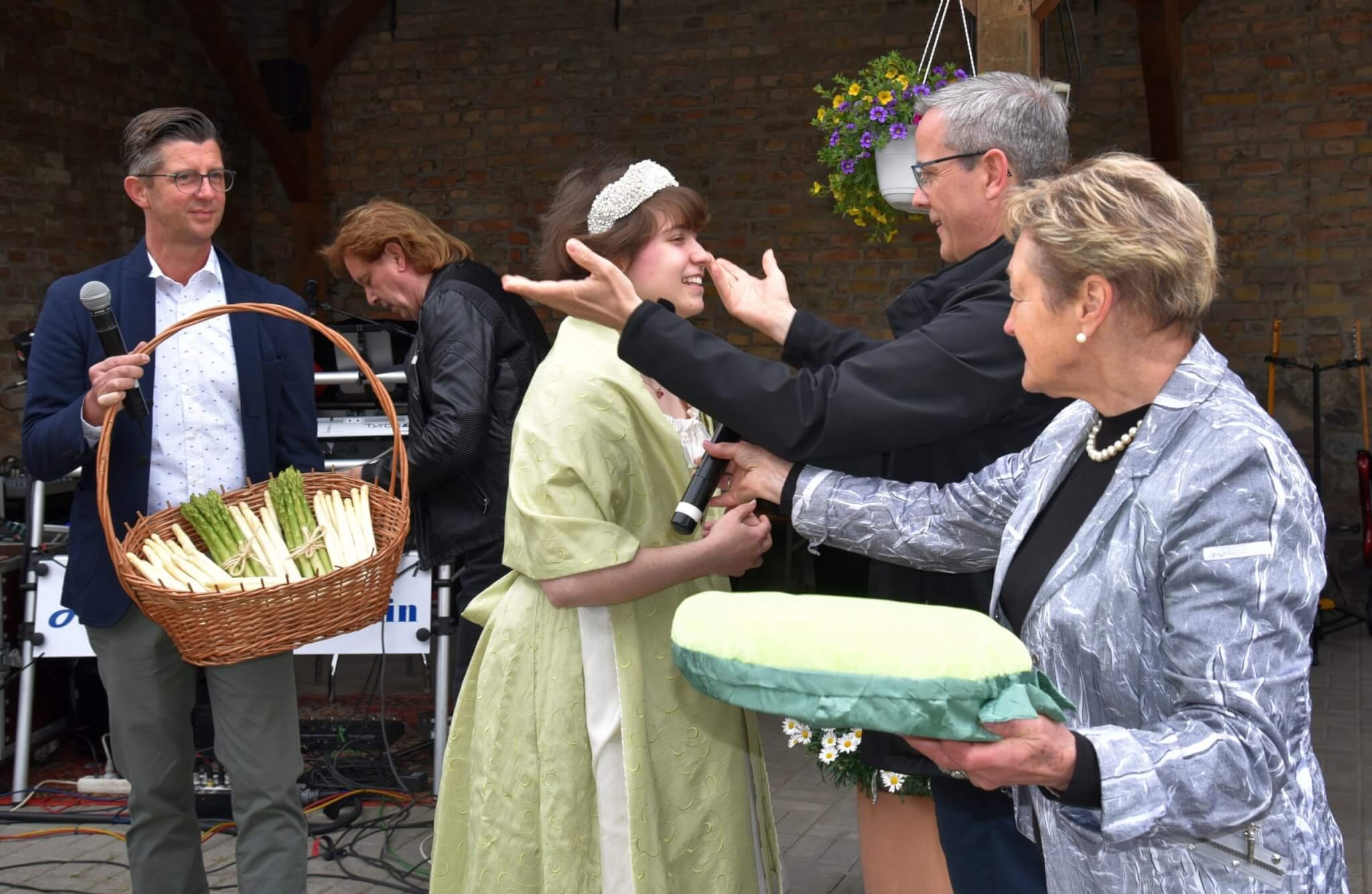 Um so mehr freute sich das Ehepaar Ehlers, die Spargelhof-Betreiber, über die zahlreichen Besucher, die an diesem 1. Mai beim feierlichen Akt der Krönung der 18. Siethener Spargelkönigin dabei sein konnten.