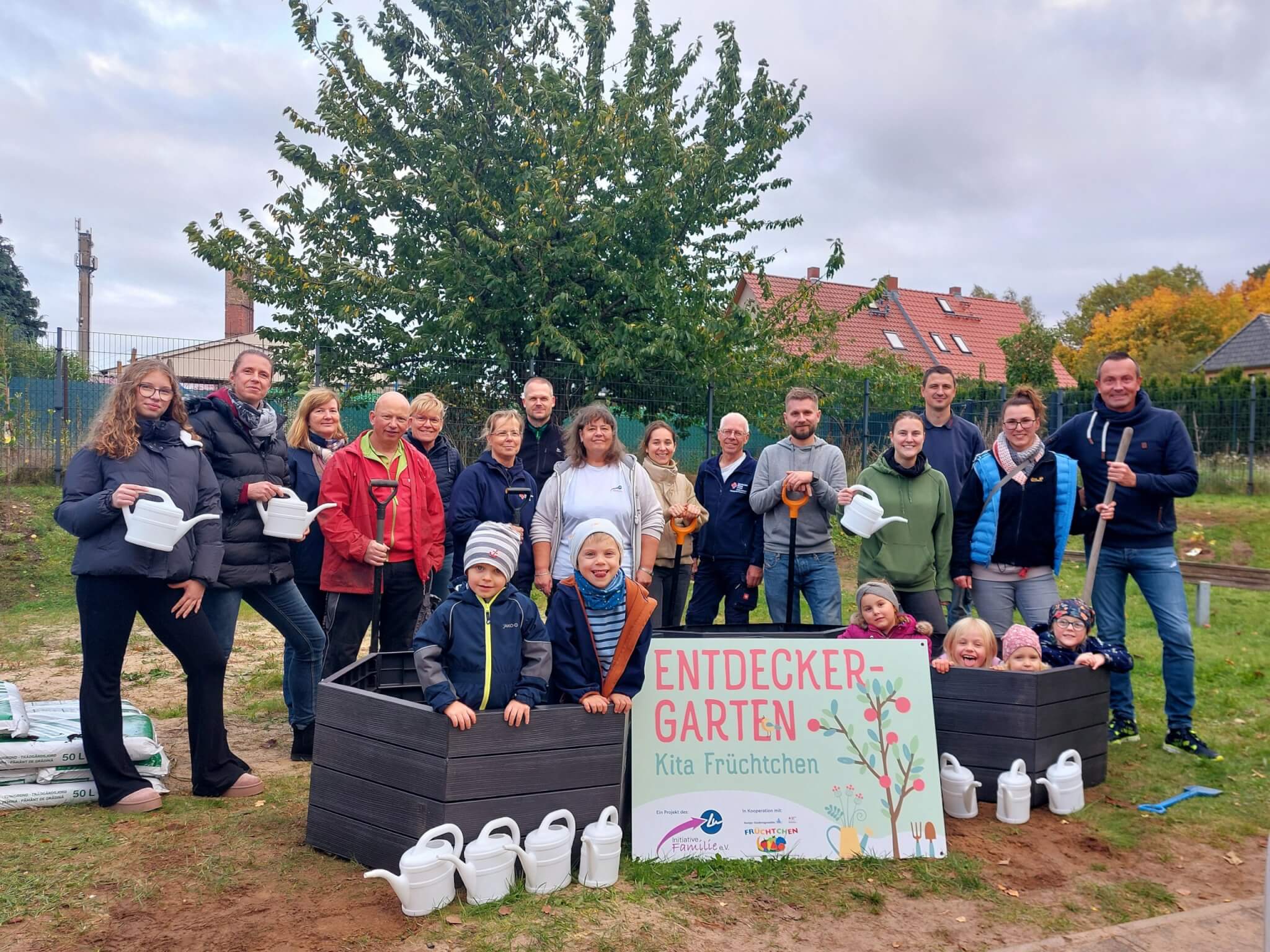 Seit dem 17. Oktober 2025 verfügt die DRK-Kneipp-Kindertagesstätte in Siethen über einen eigenen Entdeckergarten. Gemeinsam mit Kitaleiterin Ines Schnecke haben Mitglieder des Vereins Initiative Familie in LU e.V. die grüne Lernoase offiziell eröffnet. Von nun an dürfen die Kinder hier nach Herzenslust gärtnern, pflanzen und entdecken.