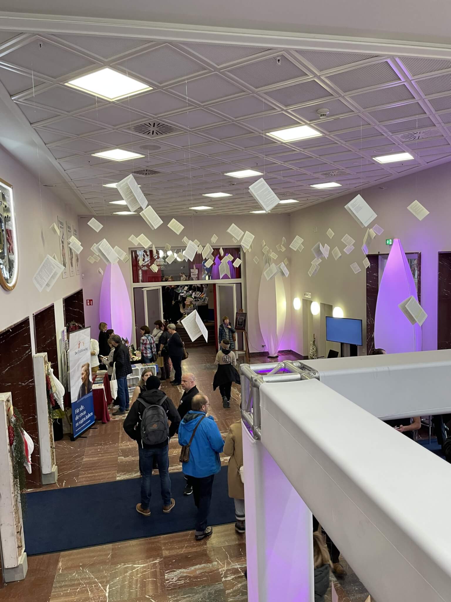 Mit viel Liebe zum Detail, wie schwebende Buchseiten unter der Decke im Eingangsbereich oder kreativ gestaltete Fotospots, waren die Räume thematisch gestaltet und rundeten das Bild ab. Die Flamingo Bar und das Lesecafé im Vestibül luden zum Verweilen ein und ermöglichten, sich die frisch gekauften Fundstücke zu begutachten. Das Organisationsteam berichtet von durchweg positiver Resonanz und großem Interesse an einer Fortsetzung im kommenden Jahr. Eine erneute Durchführung der „WortREICH“ ist daher bereits in Planung.