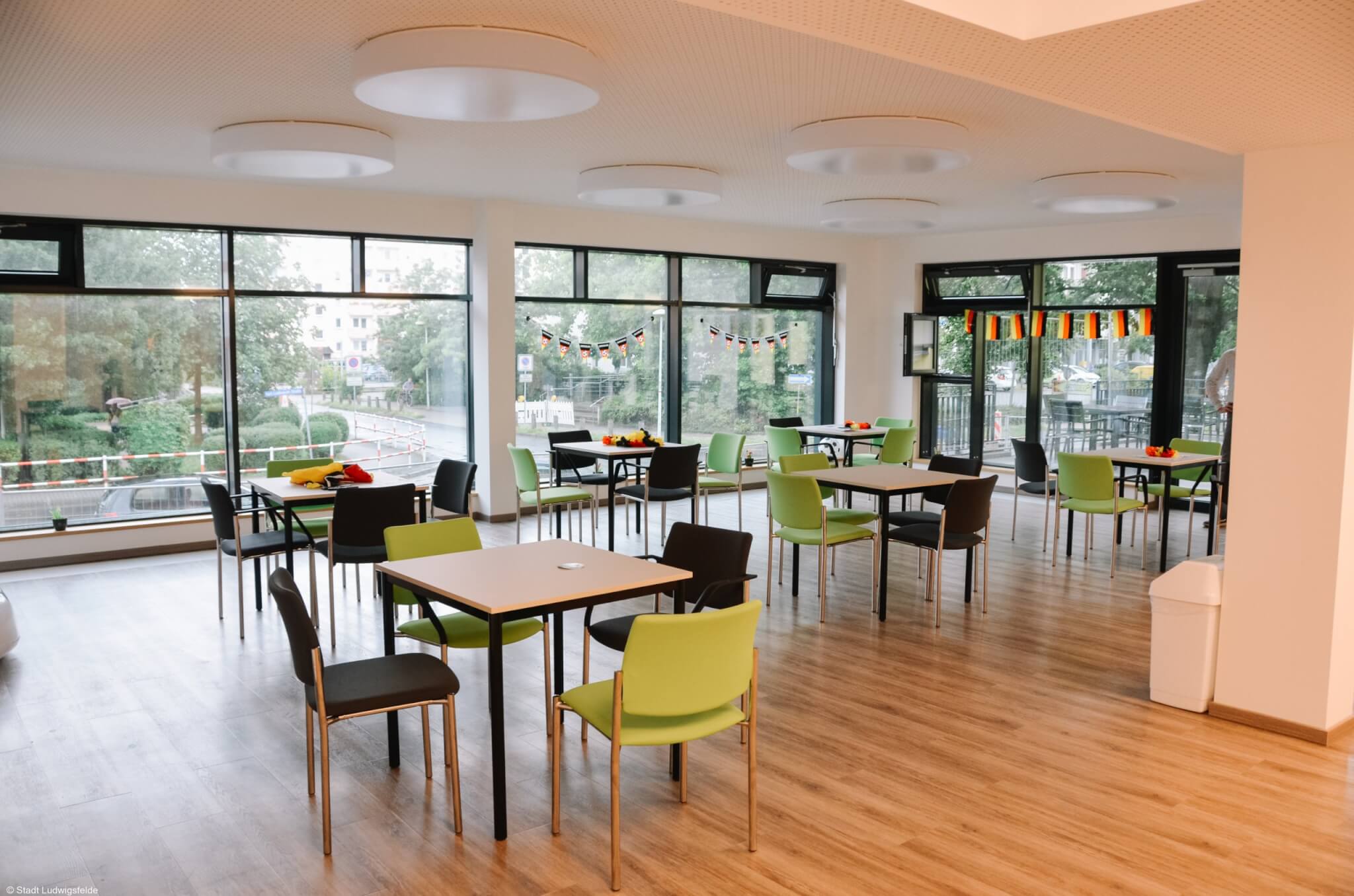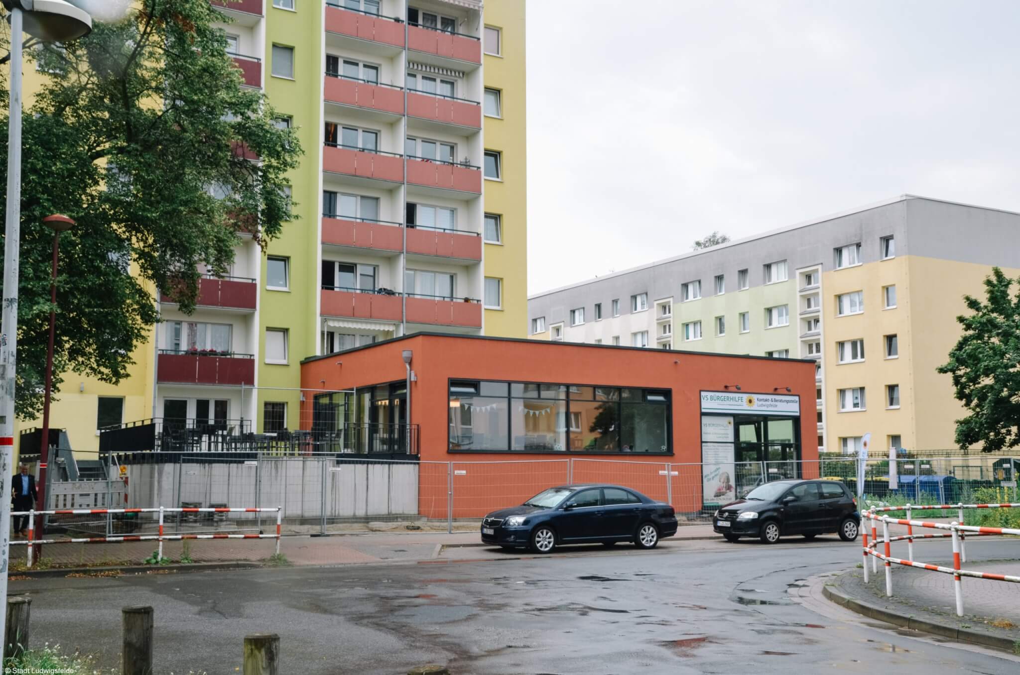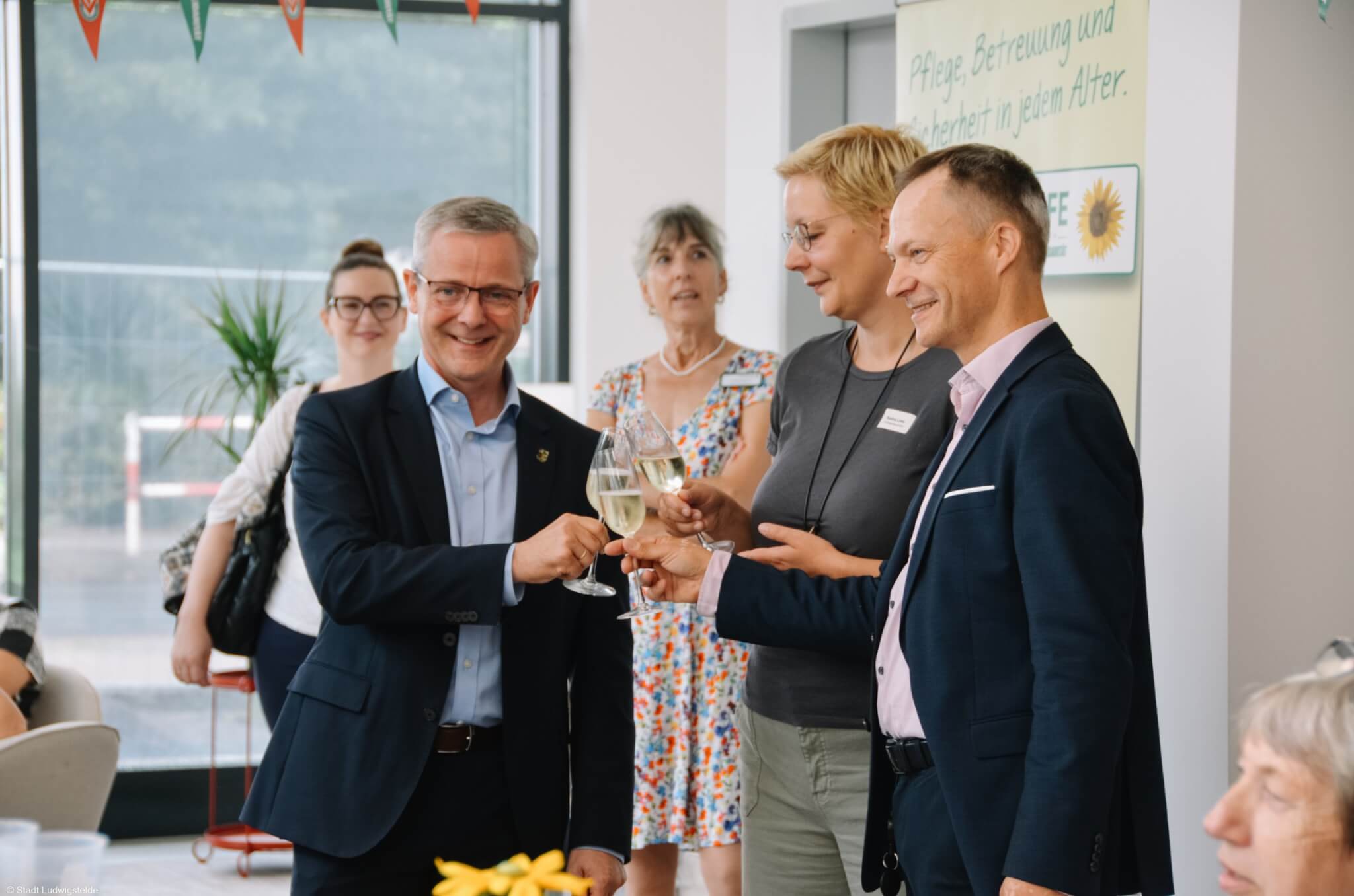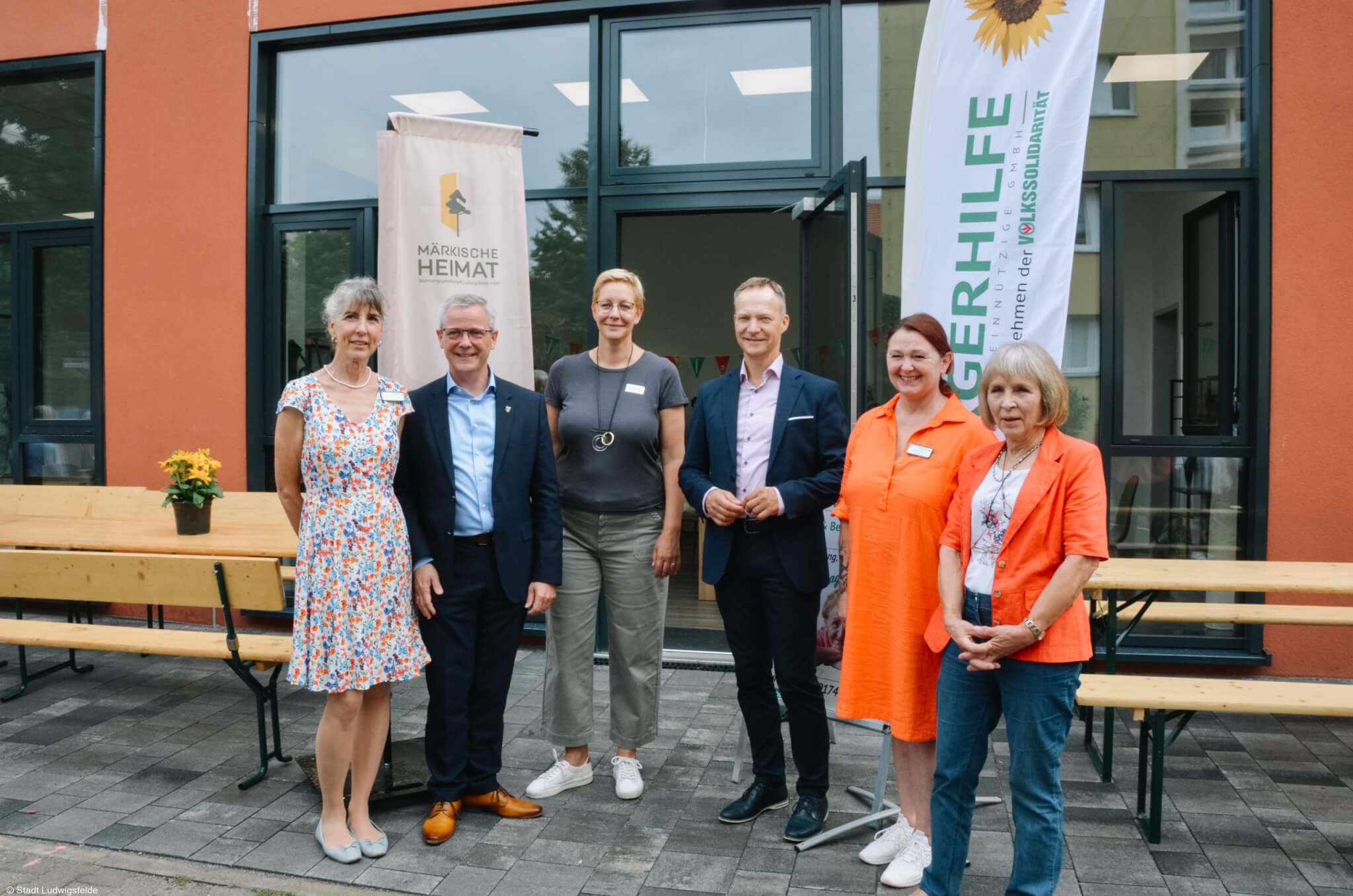 Der neue Anbau am Mittelganghaus ist fertig! In feierlicher Runde wurde er am vergangenen Freitag durch Frank Kerber, Geschäftsführer der Märkischen Heimat, und Bürgermeister Andreas Igel und Nadine Linke, Geschäftsführerin der VS Bürgerhilfe eröffnet. In dem markanten Block, der älteren Ludwigsfeldern auch als Ungarnhaus bekannt ist, leben vorwiegend ältere, alleinstehende Menschen in insgesamt 160 Wohnungen. Um die Niesche zwischen eigener Wohnung und Pflegeheim zu schließen, hat die Märkische Heimat mit dem neuen Anbau nun Räume geschaffen, die das Miteinander und die Lebensqualität im Alter stärken sollen. Rund zwei Millionen Euro hat die Märkische Heimat dafür investiert.