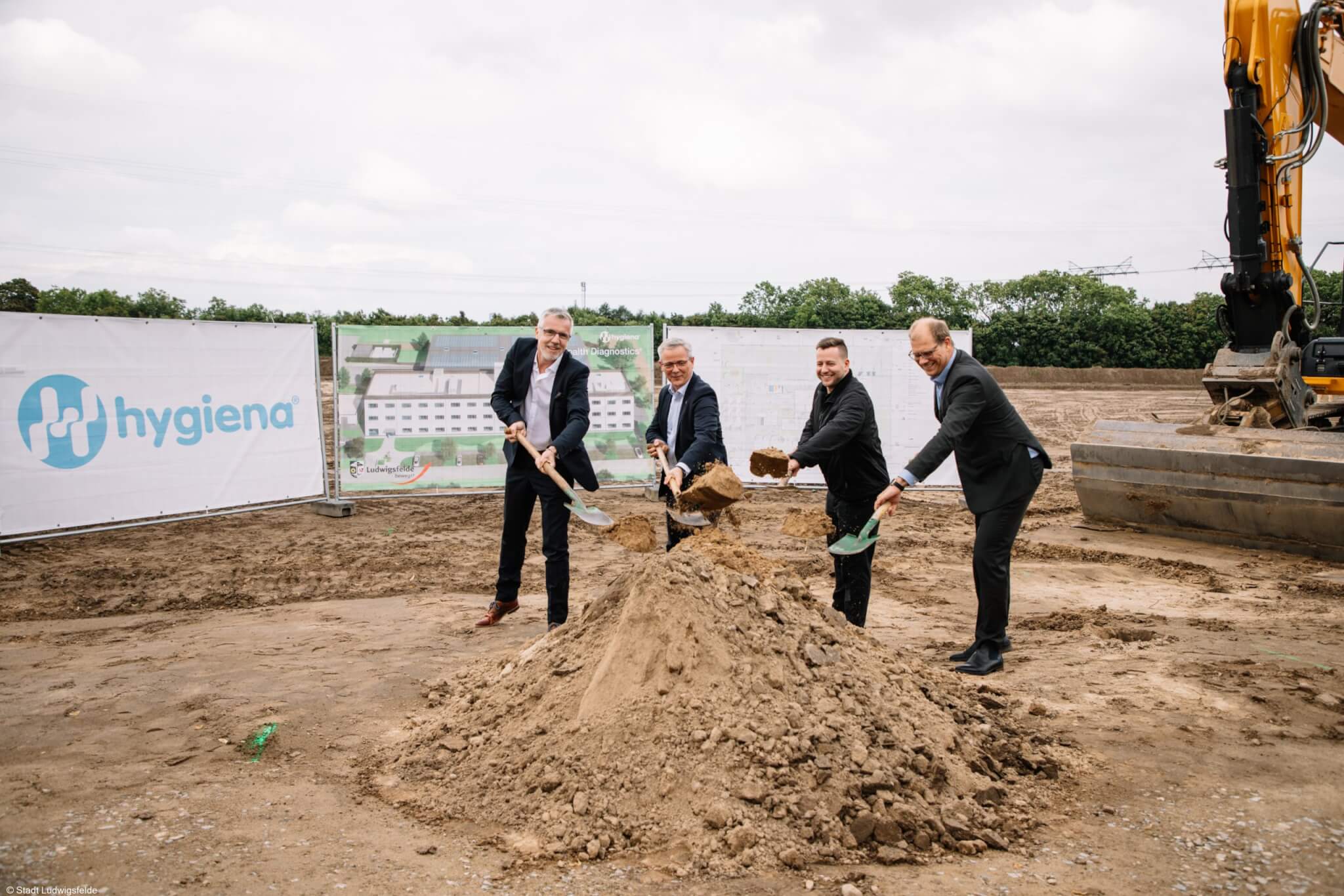 Zur Feier dieses wichtigen Meilensteins waren Bürgermeister Andreas Igel und Wirtschaftsförderin Pia Jost Ende der vergangenen Woche zum offiziellen, ersten Spatenstich von Rainer Horneburg, VP Operations EMEA bei Hygiena, auf dem bereits sichtbaren Baufeld unweit des Ludwigsfelder Schornsteins eingeladen. Der Bau startet gestaffelt: zunächst das Technikgebäude, gefolgt vom Lager- und Produktionsgebäude. Der Betriebsbeginn ist für 2027 geplant. „Wir freuen uns, ein weiteres Hightech-Unternehmen aus dem Biotechnologiesektor in Ludwigsfelde begrüßen zu können“, sagt Bürgermeister Andreas Igel. „Diese Investition unterstreicht die Attraktivität unserer Stadt als Innovations- und Wirtschaftsstandort.“