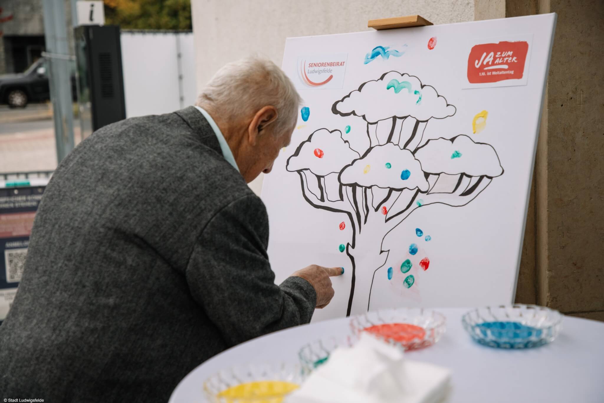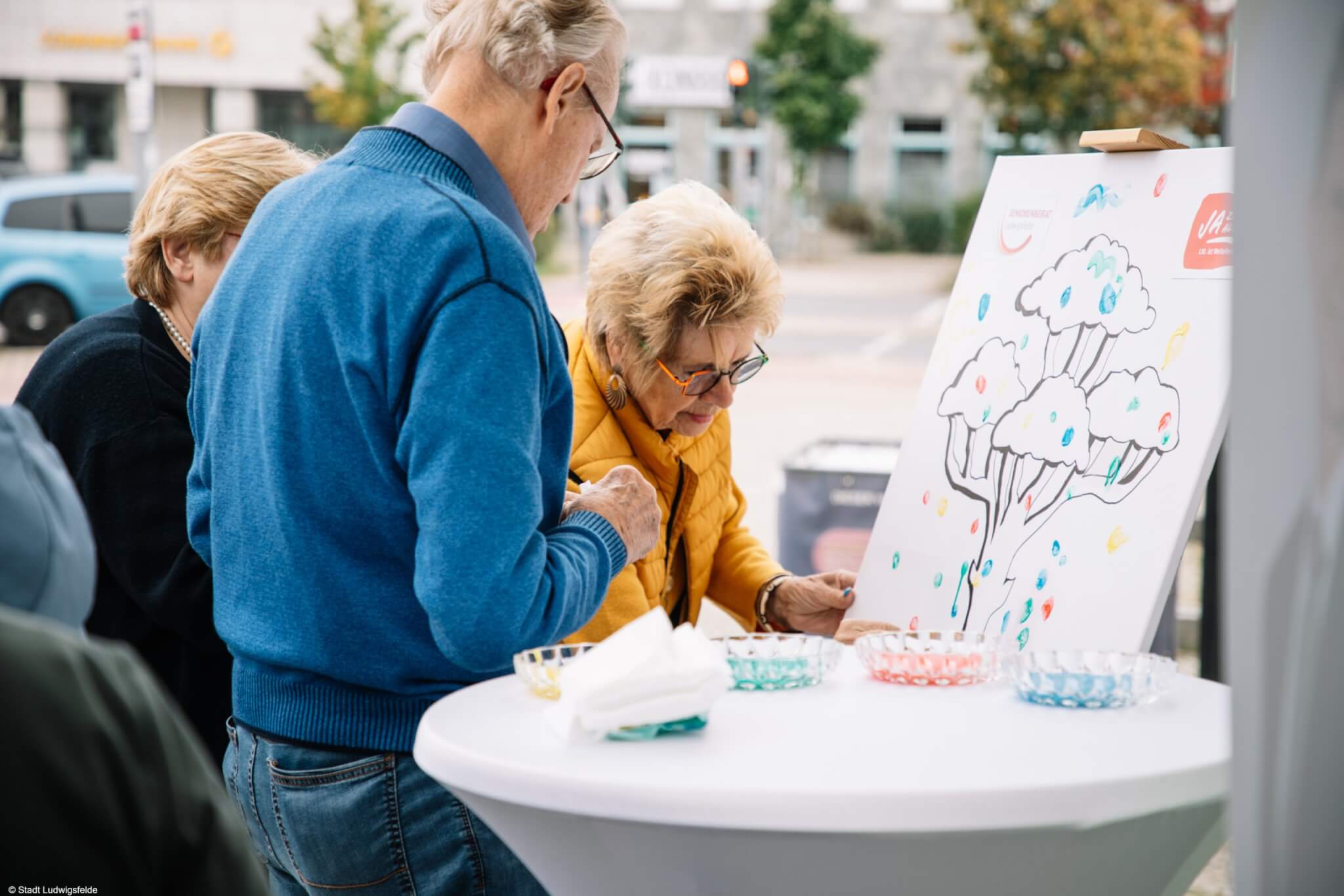 Ein besonders schöner Teil war die Baumaktion, bei der eine Leinwand mit einem symbolischen Lebensbaum aus dem Stadtwappen von Ludwigsfelde mit vielen bunten Daumenabdrücken der Kaffeeklatsch-Gäste geschmückt wurde. Damit setzte der Seniorenbeirat ein starkes Zeichen, es entstand ein eindrucksvolles Bild davon, was Leben in späteren Jahren bedeuten kann. Wurzeln haben, Kraft schöpfen, weiter wachsen – ganz wie ein Baum.