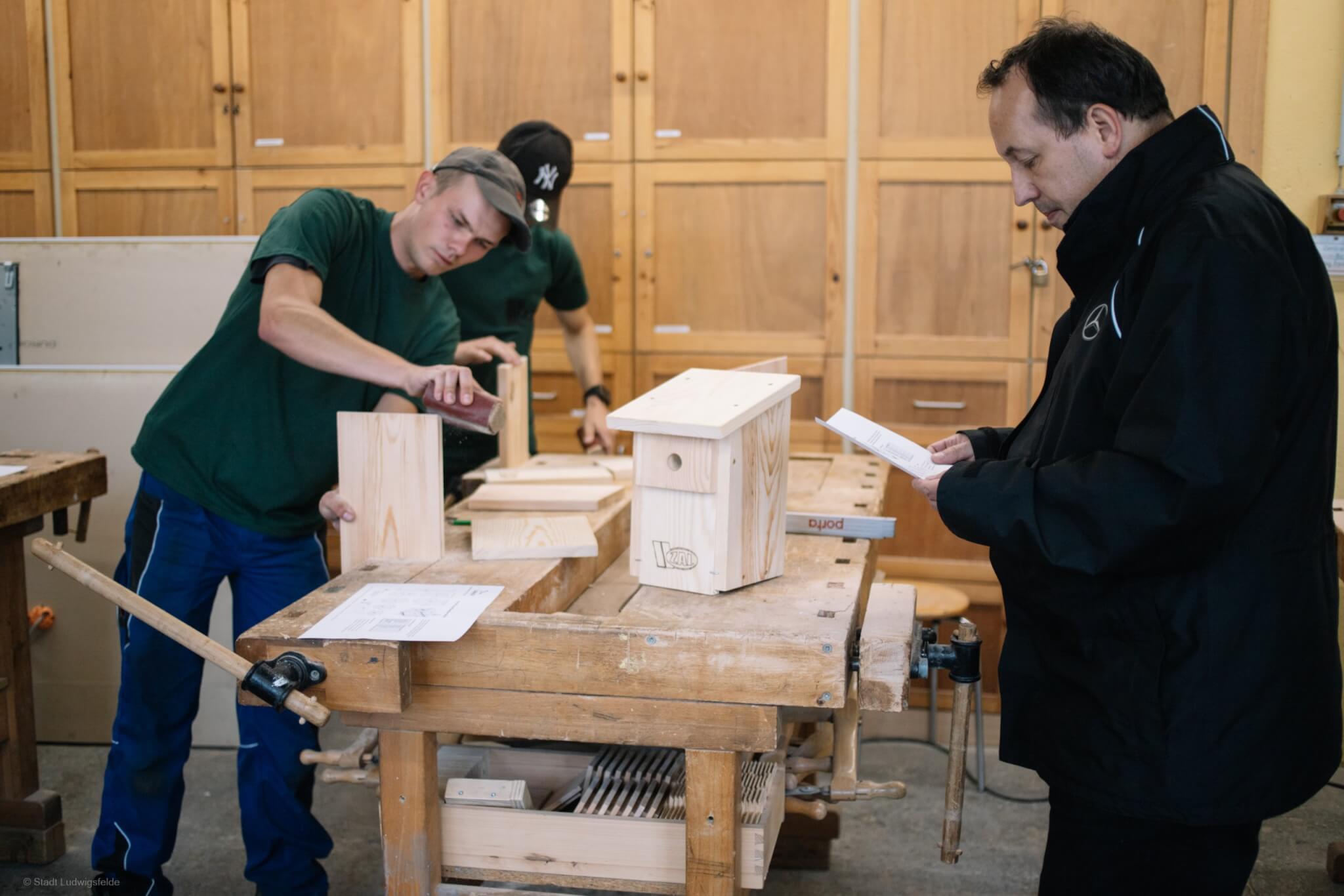 Die Vorfreude steigt: Am 6. September findet der letzte "Kaffeeklatsch on Tour" in diesem Jahr statt und wird an der idyllischen Waldbühne Mietgendorf gebührend gefeiert. Uwe John, Ortsvorsteher des Ludwigsfelder Ortsteils Mietgendorf, hat aus diesem Anlass etwas ganz Besonderes organisiert. Traditionell werden zum letzten "Kaffeeklatsch on Tour" alle Ortsvorsteher eingeladen, um ein gemeinsames Projekt zu realisieren. In diesem Jahr ist es der Bau von Vogelhäusern für die Ortsteile der Stadt. Hierfür wurde von Lehrlingen des ZAL (Zentrum für Aus- und Weiterbildung Ludwigsfelde), nach Vorgaben des Naturschutzbundes ein siebenteiliger Vogelhaus-Bausatz hergestellt. Von den vorbereitenden Arbeiten machten sich Uwe John und Moderatorin Carla Karstädt in dieser Woche selbst ein Bild in der Tischlerei des ZAL.