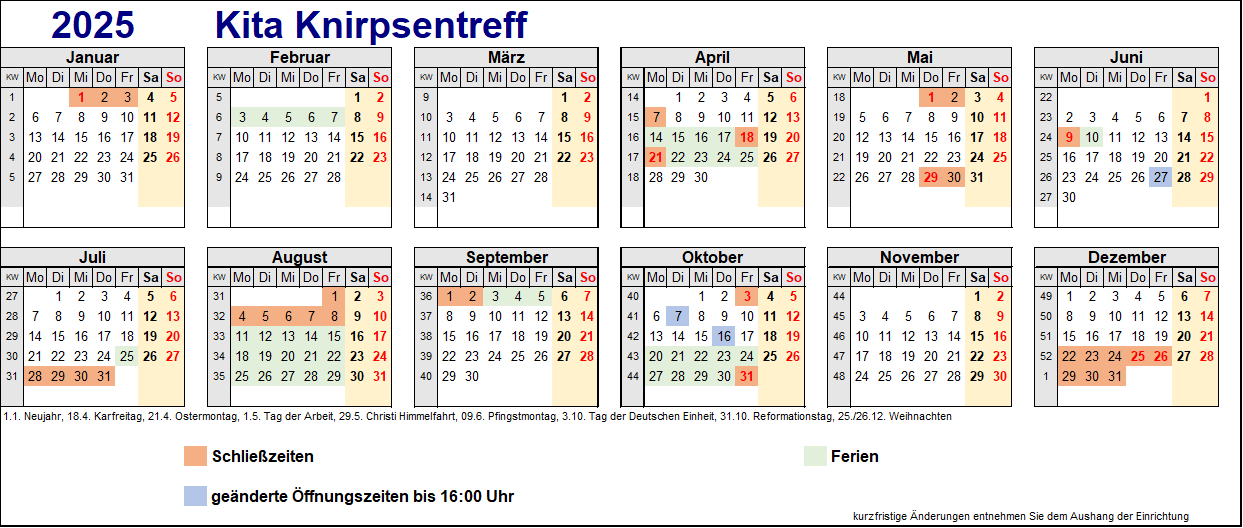 Die Schließzeiten für das Kita-Jahr 2025/2026: