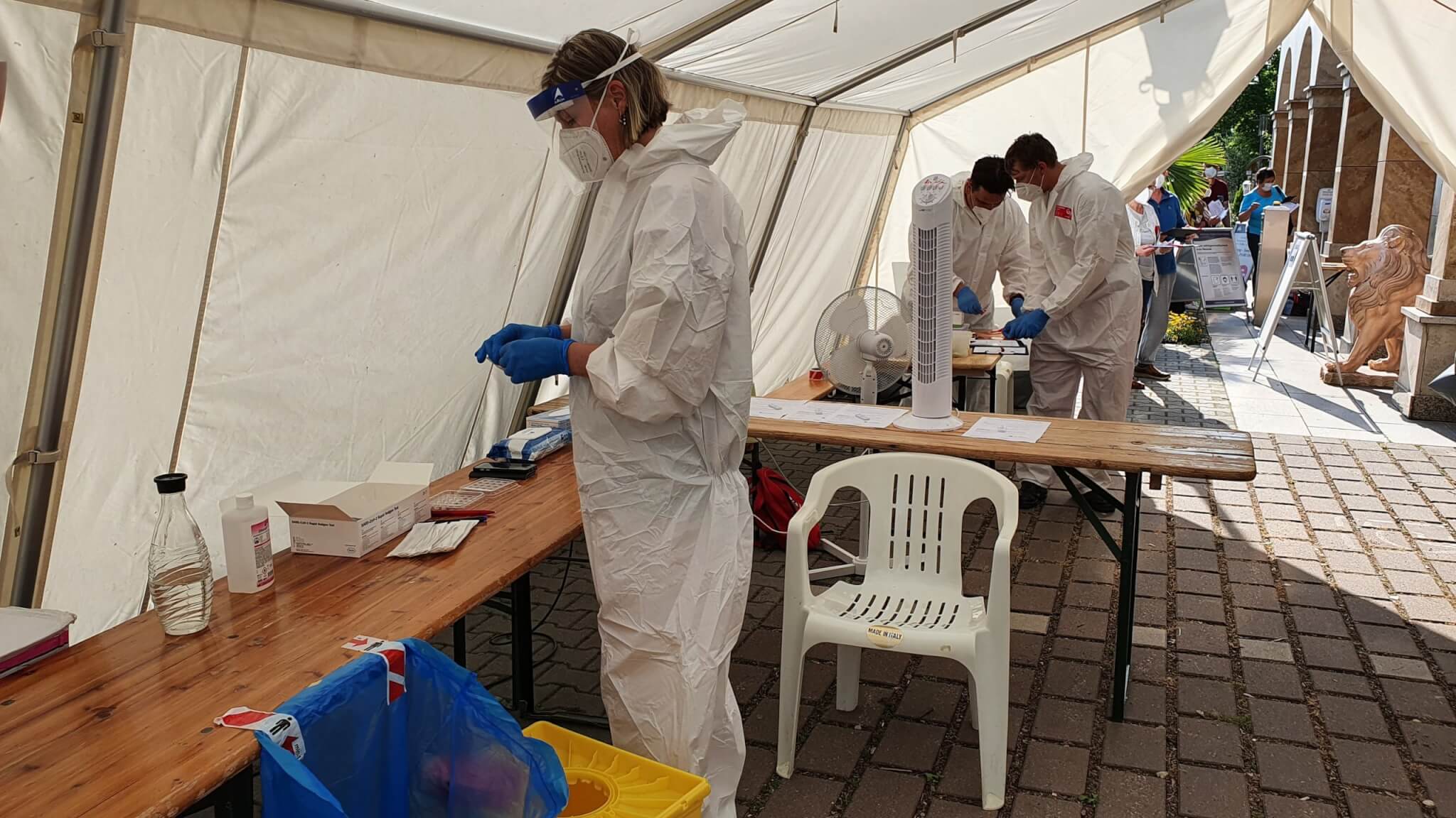 Seit Freitag, den 11.06.2021 hat die Wohlfühltherme Ludwigsfelde nach 7-monatiger Lockdown-Pause wieder geöffnet. Bereits um 8.00 Uhr sammelten sich die ersten Gäste vor dem Zelt des DLRG auf dem Parkplatz der Therme, um sich gemäß den vorgeschriebenen Einlassbedingungen kostenfrei testen zu lassen. Für vollständig geimpfte und genesene Besucher ging es direkt zum Einlass.