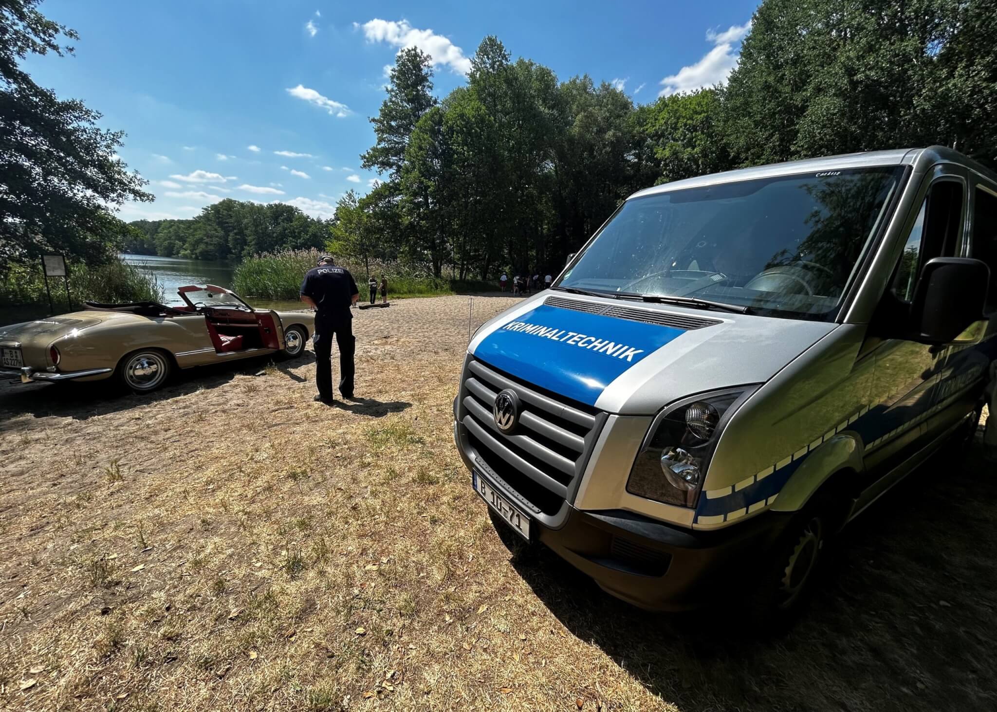Zwei Kommissare, ein verlassener Oldtimer und die Kriminaltechnik waren in dieser Woche an der Badestelle in Siethen zu beobachten. Zum Glück handelte es sich dabei nicht um einen echten Fall, sondern um Dreharbeiten für den ZDF-Krimi „Letzte Spur Berlin“, der voraussichtlich im Herbst 2023 zu sehen ist.