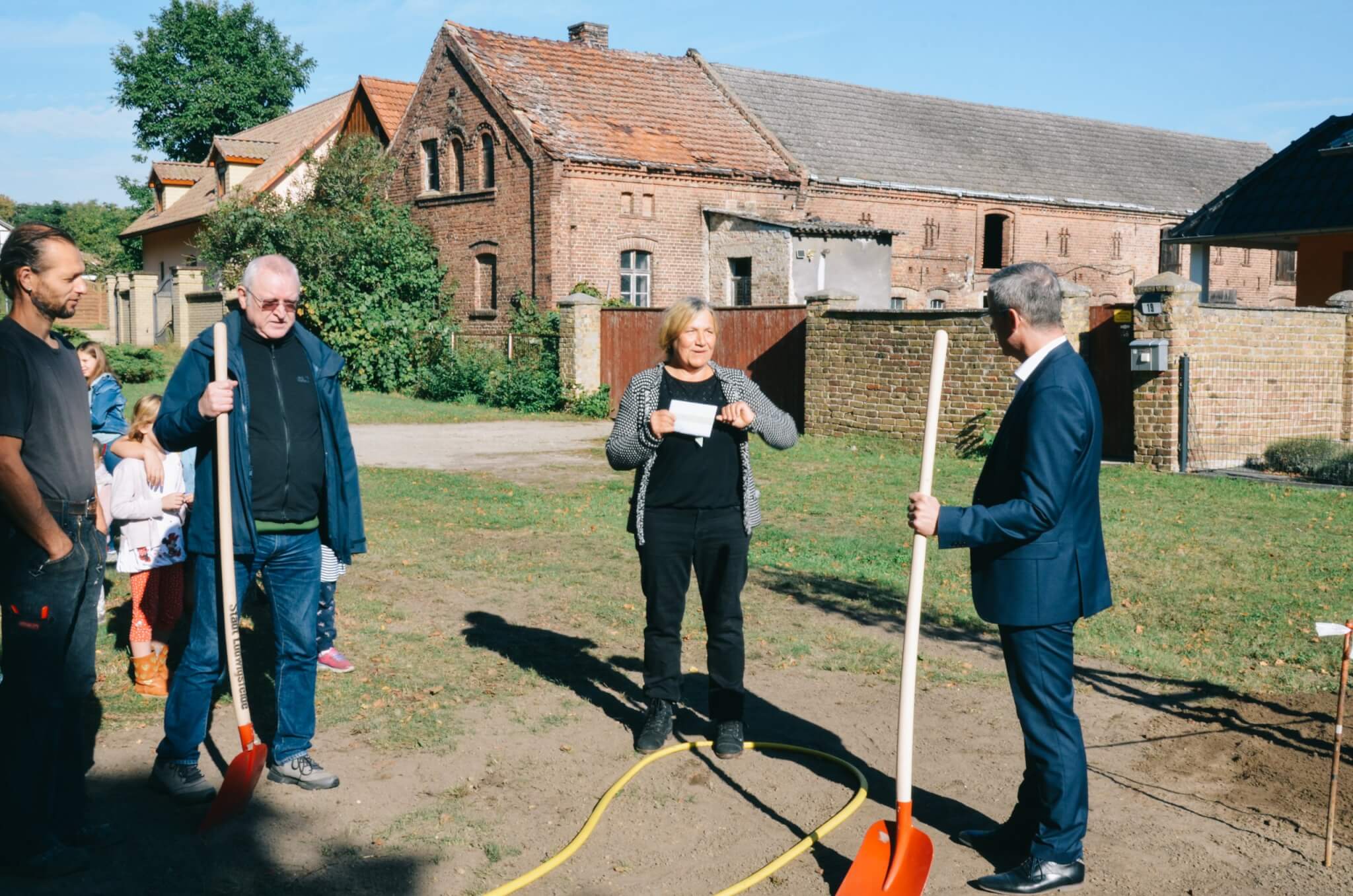 Die Neugestaltung des Dorfangers ist ein Projekt, bei dem viele Akteure des rund 200 Einwohner großen Dorfes zusammengearbeitet haben: Daniel Schiemann hatte innerhalb kürzester Zeit ein Pflanzkonzept mit fünf großen Pflanzbereichen erarbeitet, die dorftypisch mit Gehölzgruppen bepflanzt werden sollen. Die Erdarbeiten für den ersten, nun gepflanzten Baum übernahm die in Kerzendorf ansässige Firma TERBA um Geschäftsführer Ralf Schulze, der die Dorfgemeinschaft bereits des Öfteren unkompliziert unterstützte.