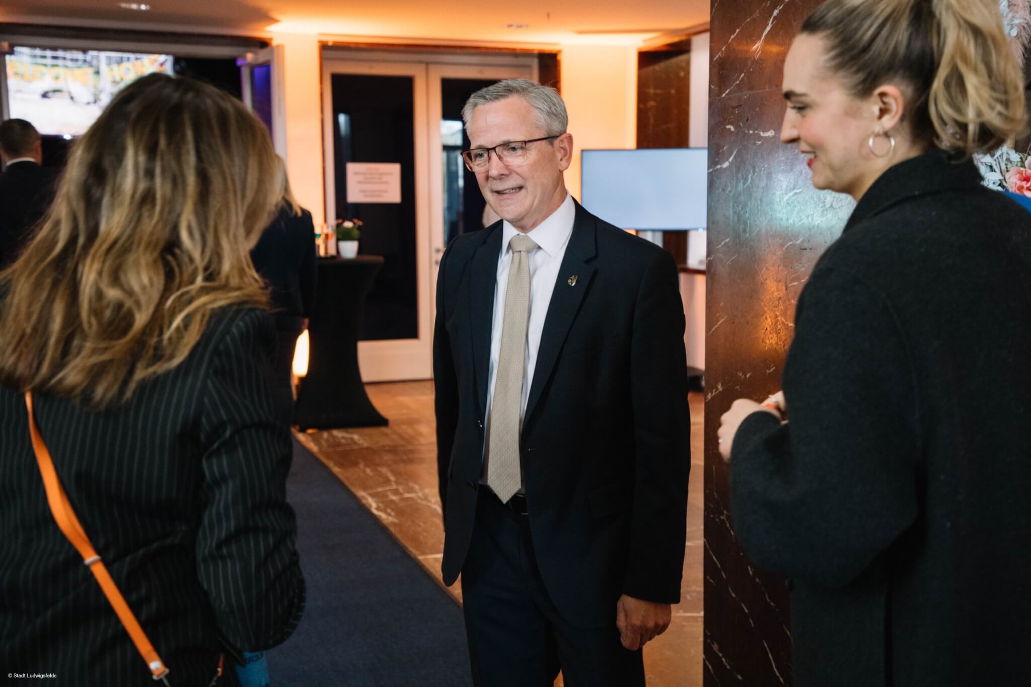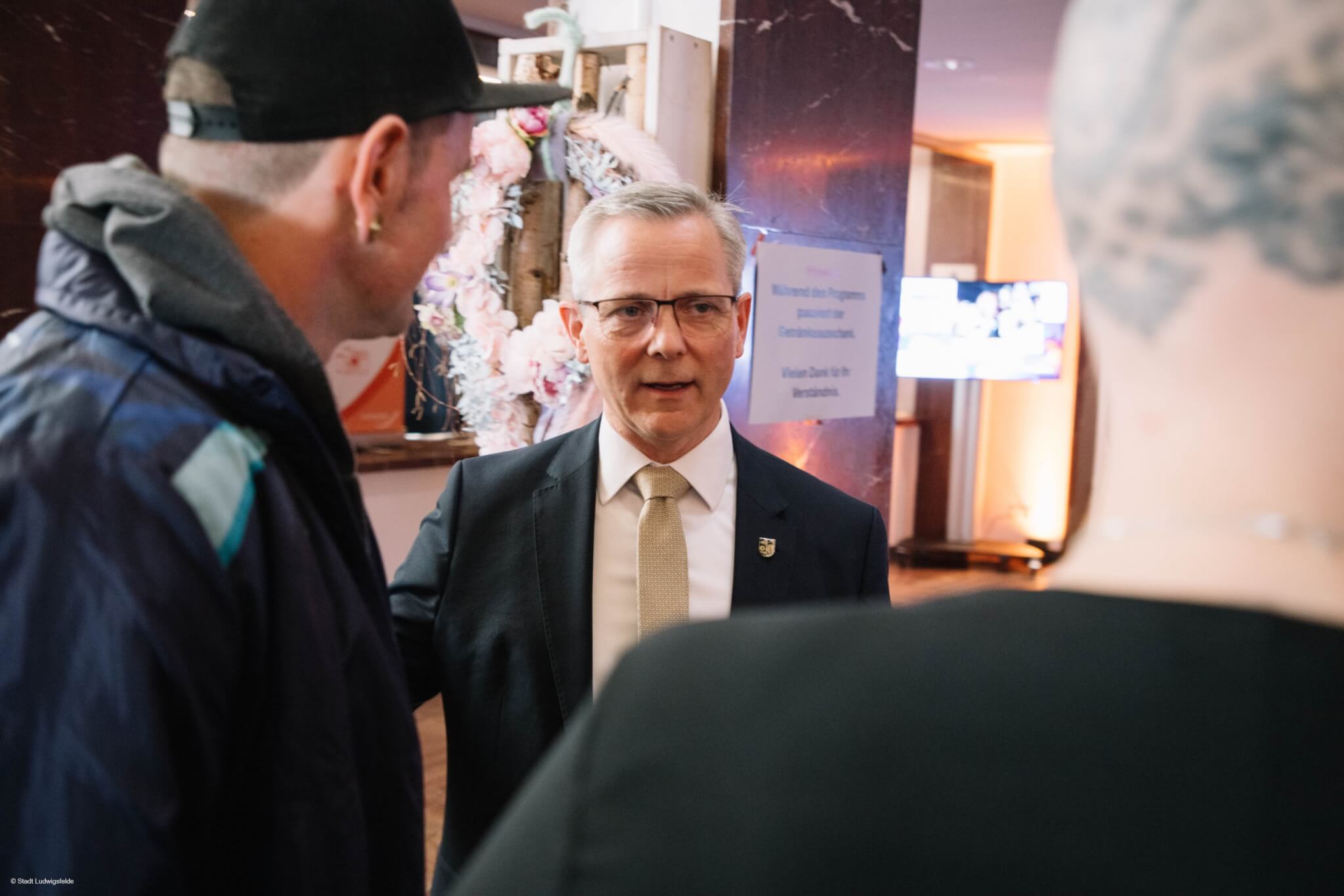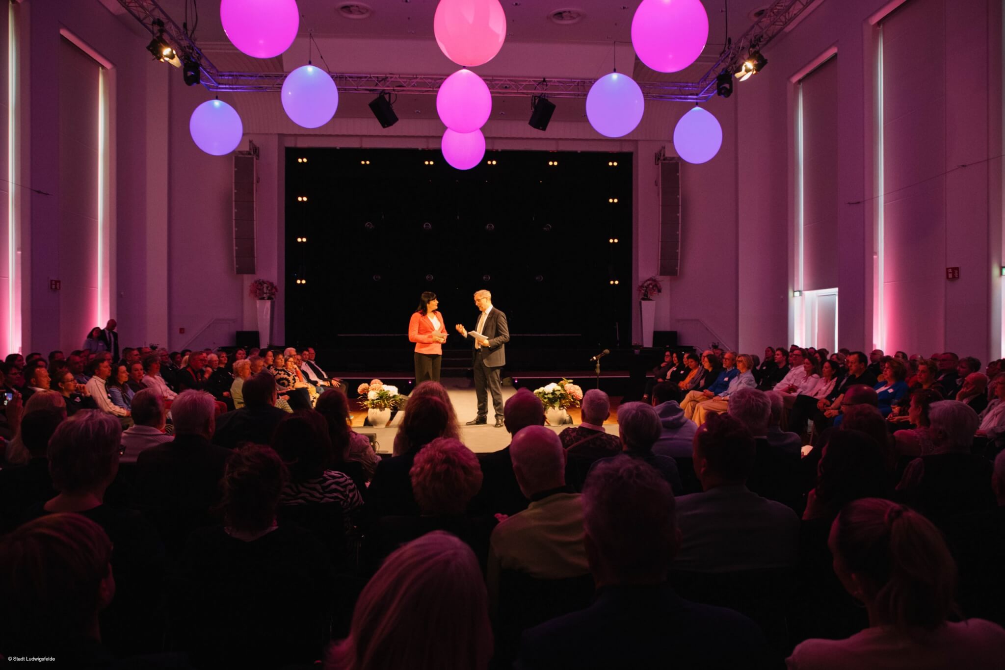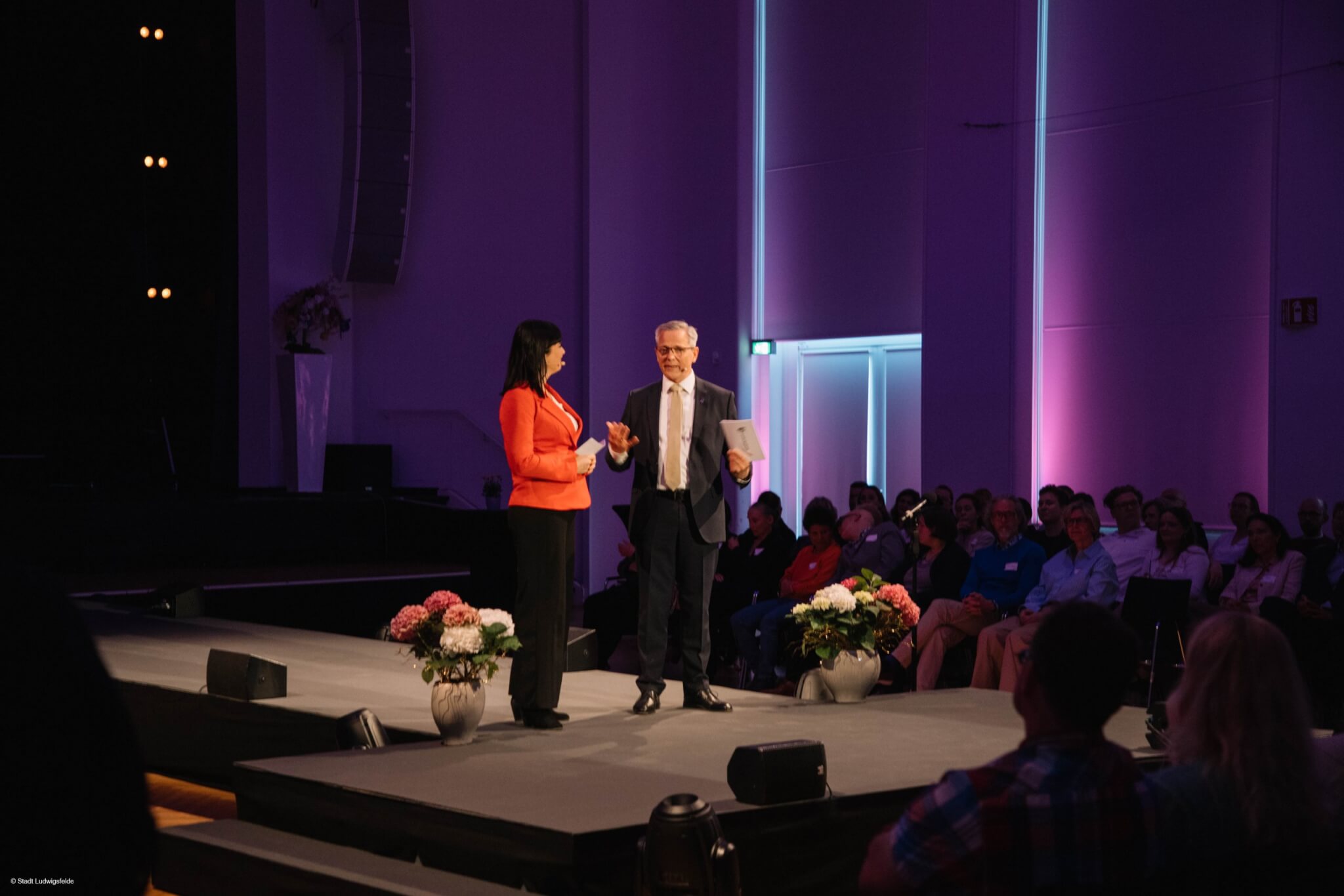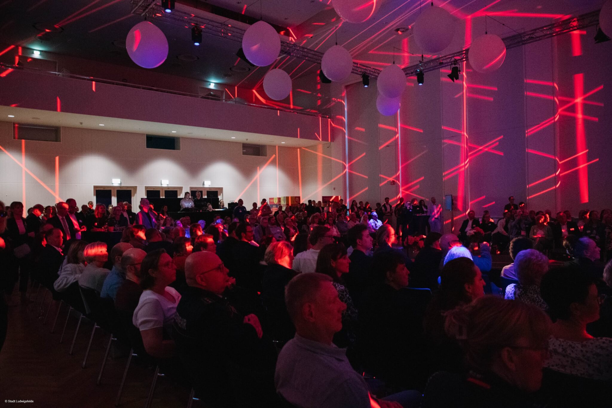 Rund 300 Gäste sind am vergangenen Freitag der Einladung von Bürgermeister Andreas Igel und Odette Brosig, Vorsitzende der Stadtverordnetenversammlung, zum traditionellen Frühjahrsempfang ins Klubhaus gefolgt. Unternehmerinnen und Unternehmer, Vertreterinnen und Vertreter aus Vereinen, Stadtverordnete, Ortsvorsteherinnen und Ortsvorsteher sowie zahlreiche Partnerinnen und Partner der Stadt nutzten den Abend für Gespräche, Austausch und neue Kontakte.