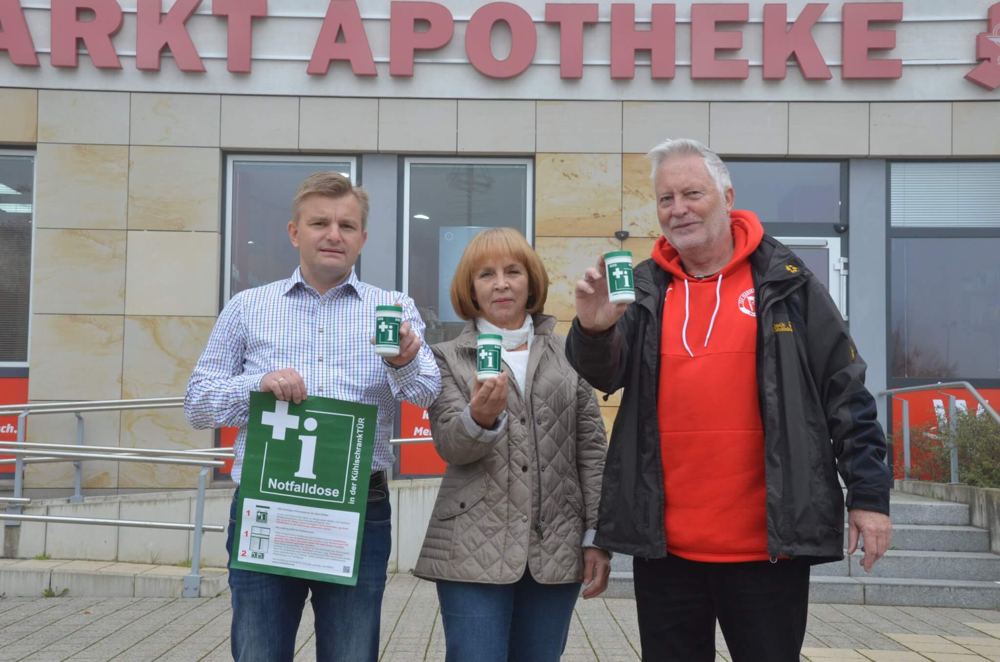 Zusammen mit Apotheker Andreas Wendorff (links) stellten Dr. Vera Paul (mitte) und Dietmar Lohrberg (rechts) 2017 die Notfalldosen vor.