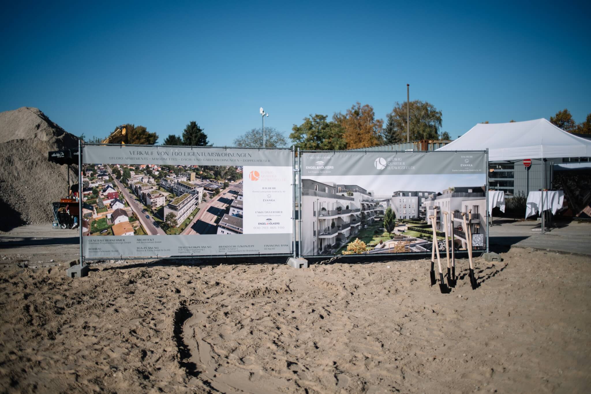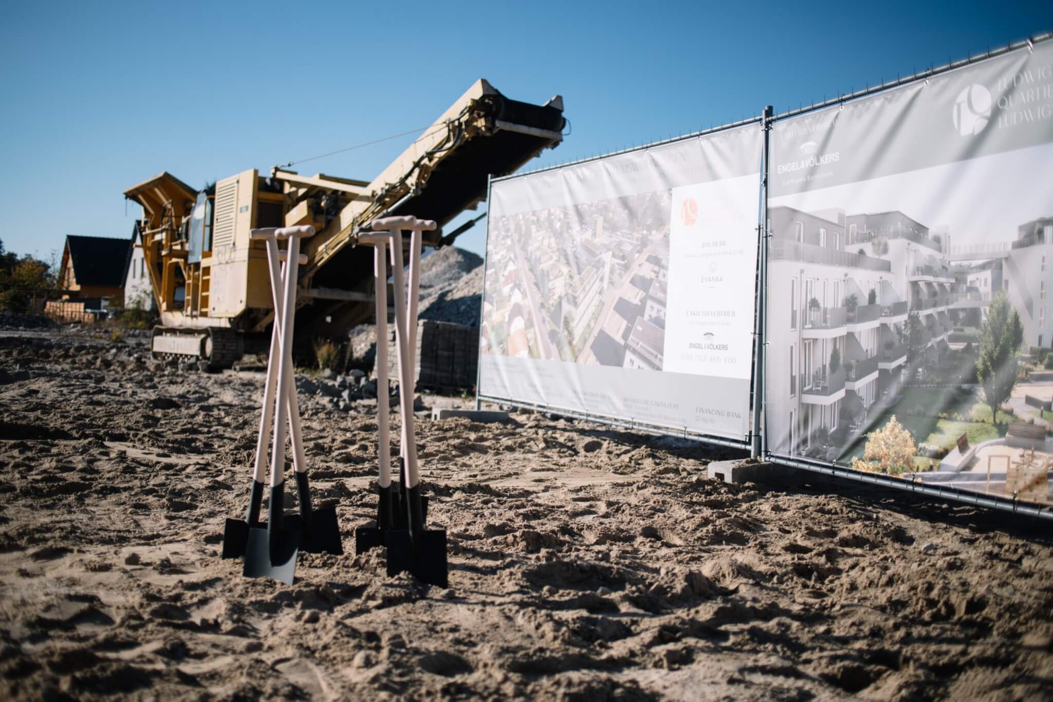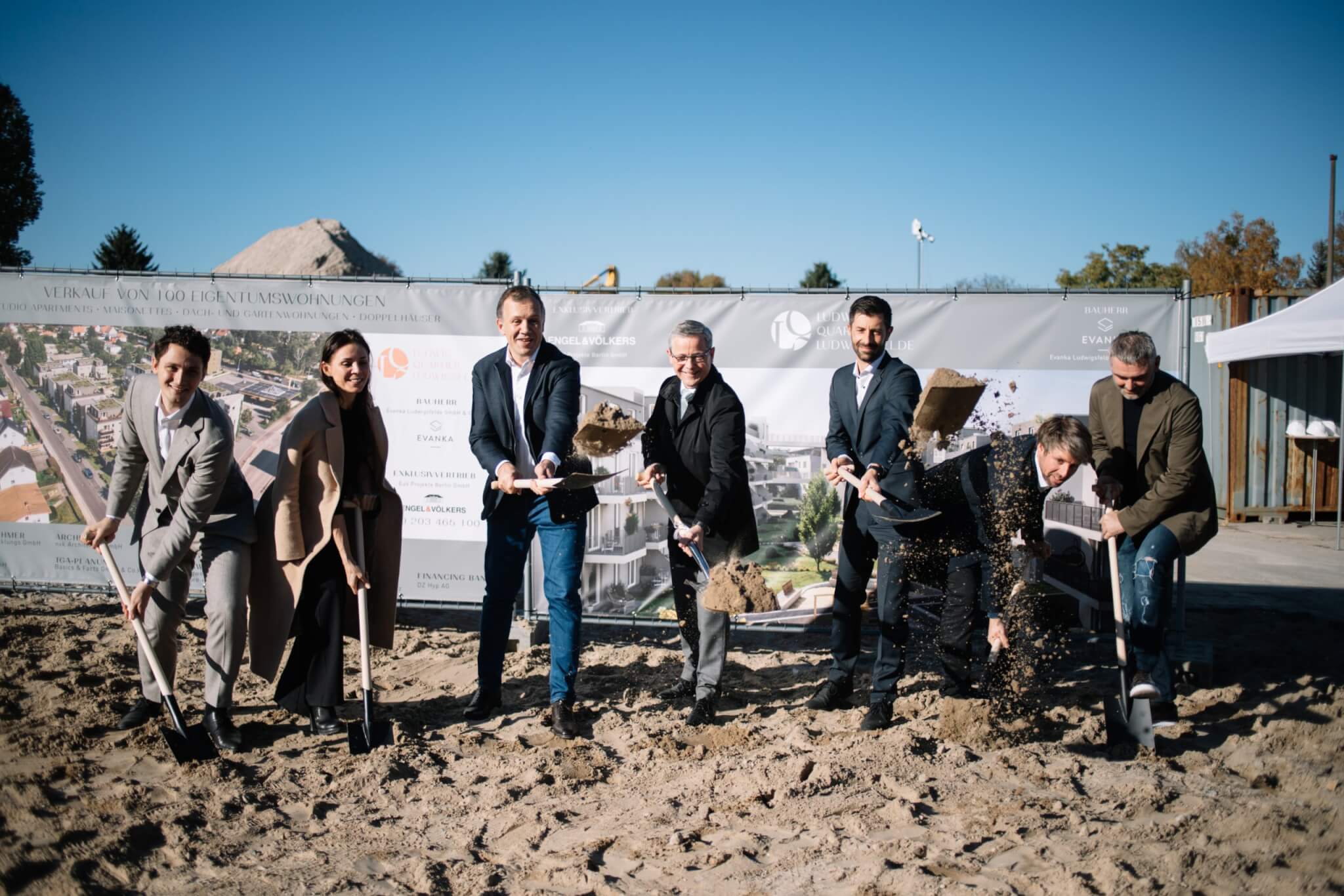 Die Sonne strahlte am vergangenen Donnerstag - die vielen Gesichter der Anwesenden ebenfalls. Grund dafür war der erste Spatenstich für die Bauarbeiten am neuen Ludwig Quartier an der Jet-Tankstelle zwischen Potsdamer Straße und Rheinstraße. Bis Ende 2024 sollen dort elf Wohnhäuser mit 100 modernen und hochwertigen Ein- bis Fünf-Zimmerwohnungen und insgesamt 125 Tiefgaragenplätze entstehen. Geplant sind außerdem zwei Gewerbeeinheiten, sowie Spiel- und Grünflächen.
