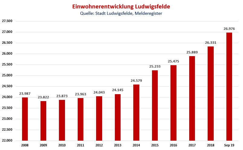 Das Einwohnerwachstum in Ludwigsfelde ist ungebremst: In den kommenen Wochen wird die Stadt die Einwohnerzahl von 27.000 erreichen und marschiert damit weiter auf die magische Zahl von 30.000 Einwohnern zu. Damit hat die Stadt Ludwigsfelde seit dem Mauerfall 1989 knapp 4.500 Einwohner dazugewonnen.