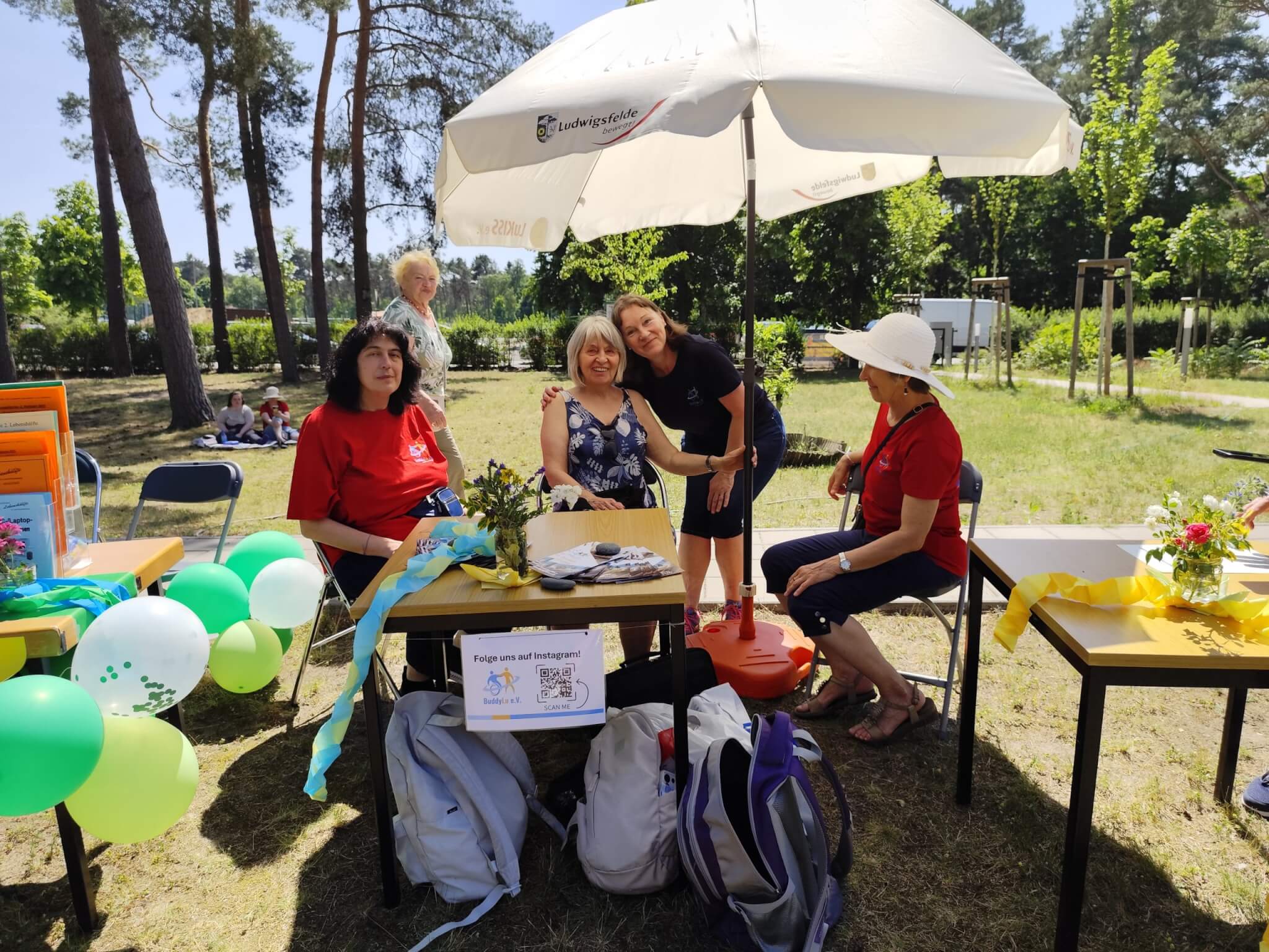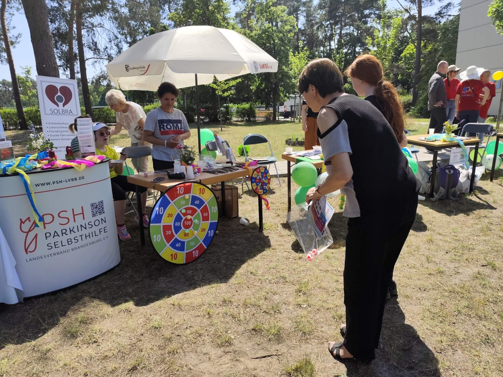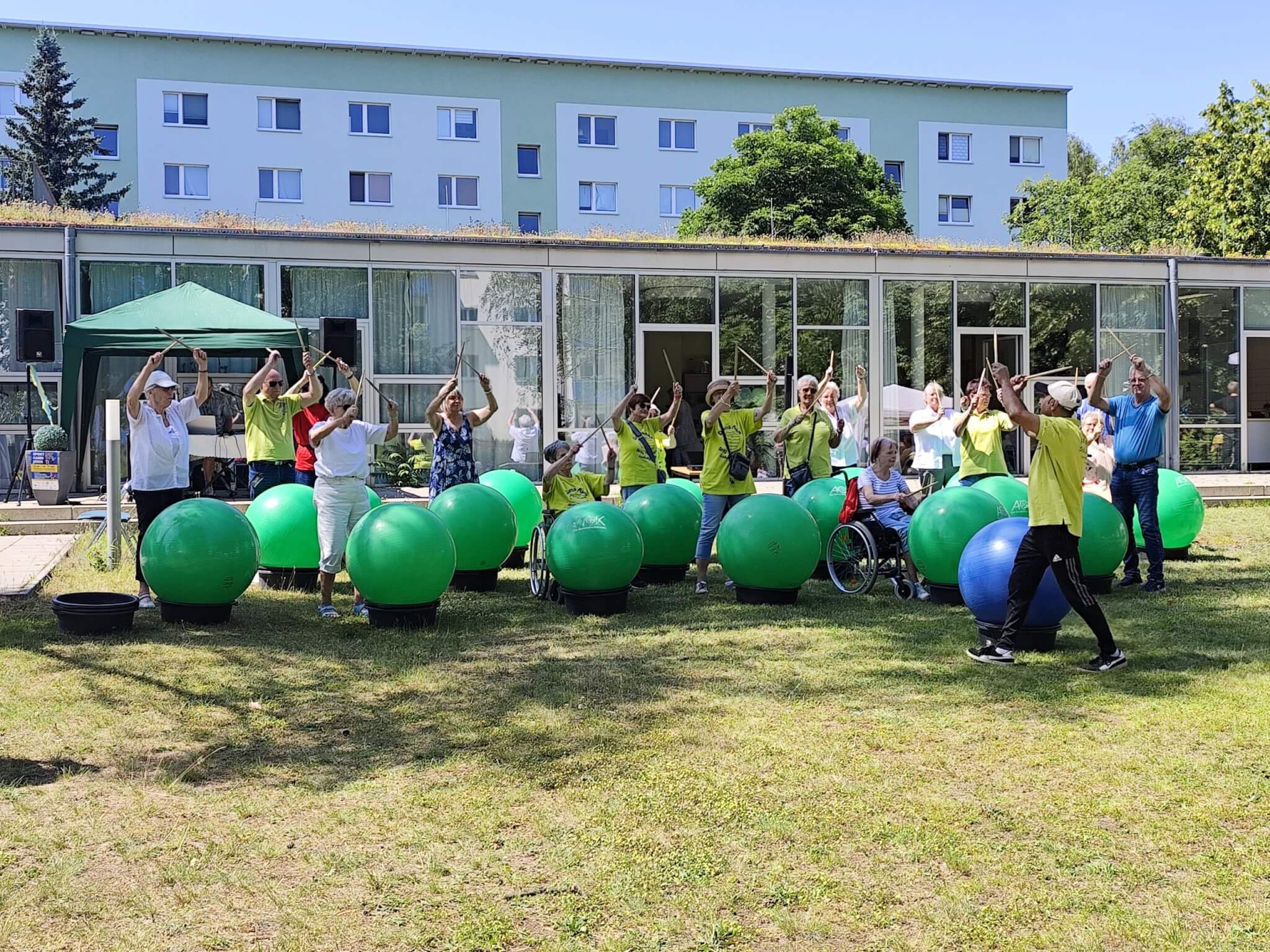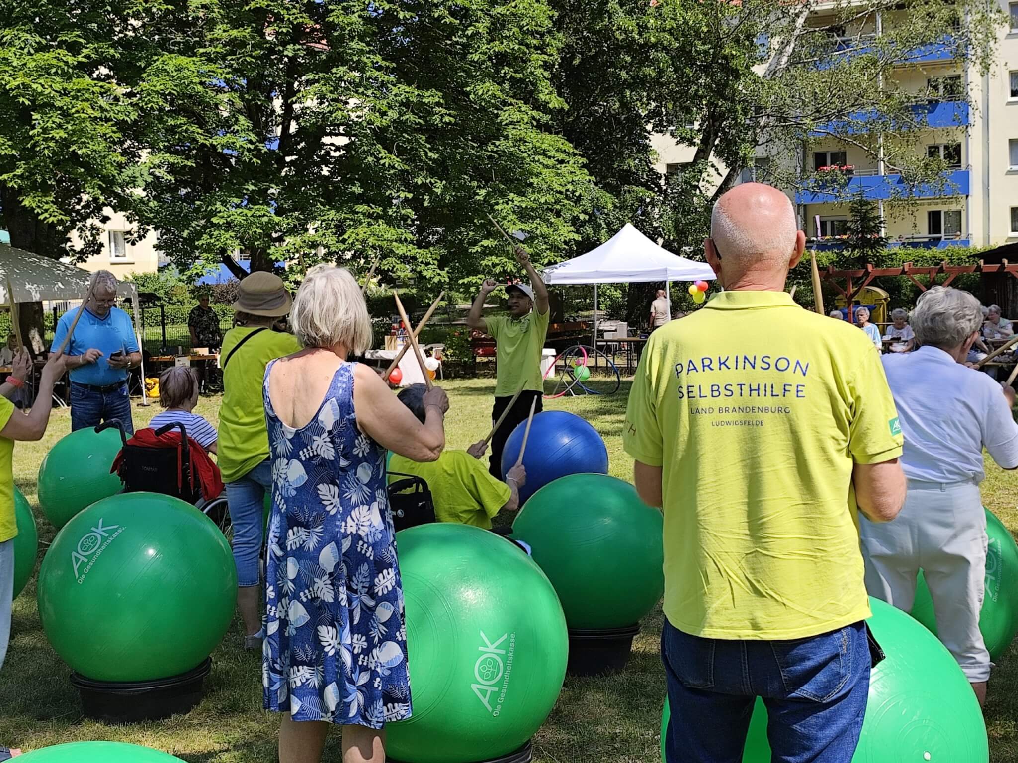 Zahlreiche Vereine und Initiativen aus Ludwigsfelde präsentierten stolz ihre Arbeit und luden zum Gespräch ein. Es war eine gute Gelegenheit, um Kontakte zu knüpfen, lokale Angebote kennenzulernen und sich inspirieren zu lassen. Besonders die vielfältigen Darbietungen sorgten für Begeisterung: Die Gruppe „Drums Alive“ der Parkinson Selbsthilfe Ludwigsfelde mit ihrem Gruppenleiter Bodo Fröhndrich und Trainer Kaushik Gosai brachte rhythmisches Trommeln auf die Wiese. Die Selbsthilfegruppe „Tanz und Bewegung gegen den Schmerz“, bekannt als Tanzmariechen, unter Leitung von Wenke Pedro begeisterte mit unterschiedlichen Tänzen.