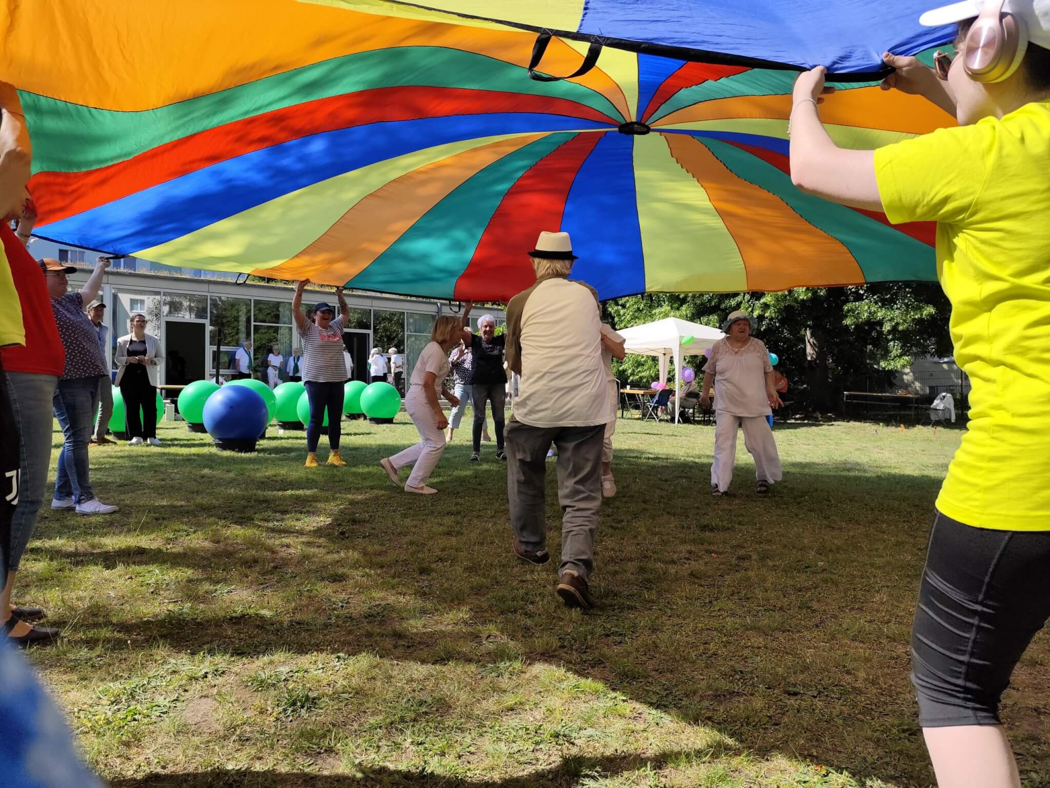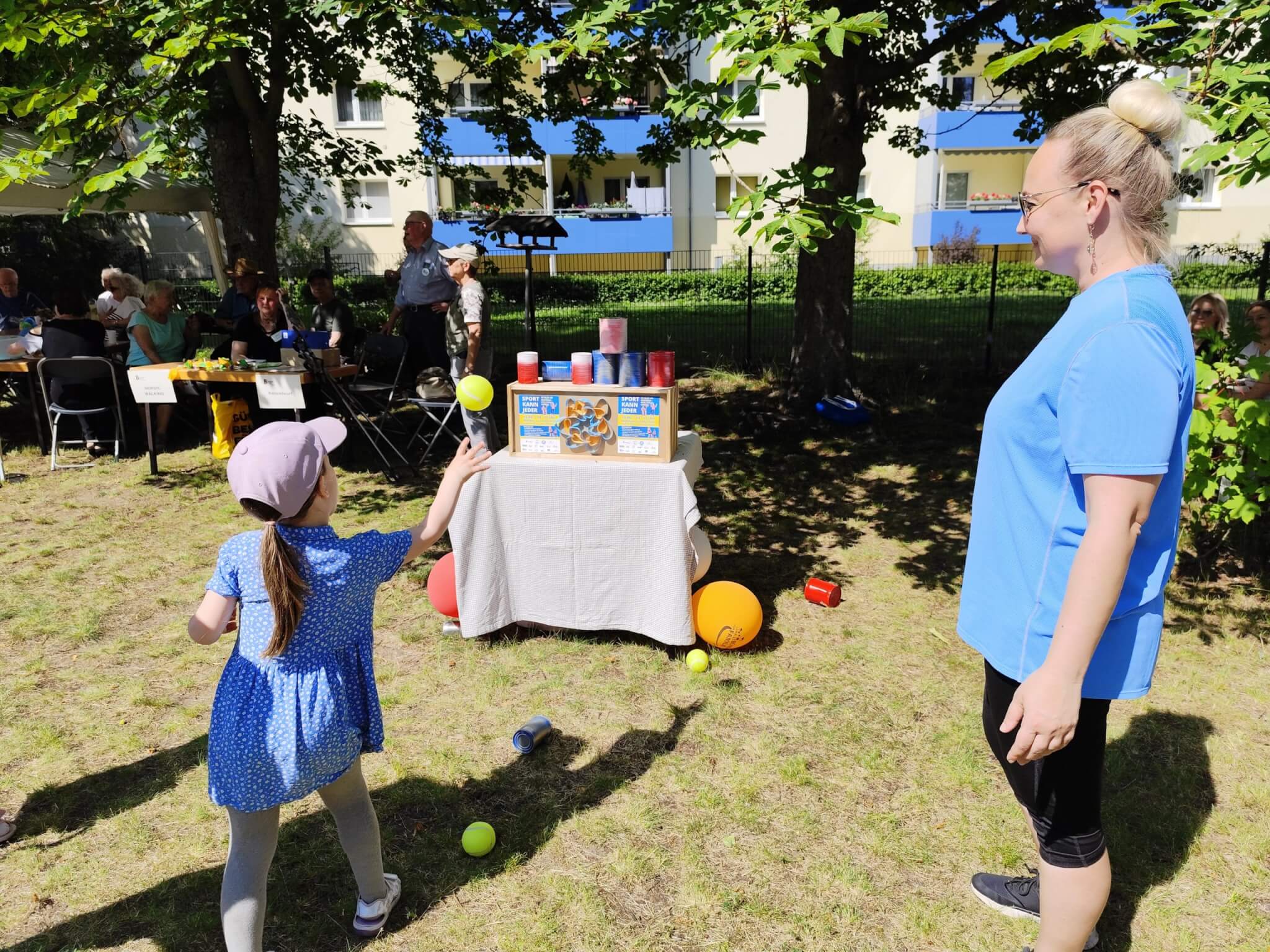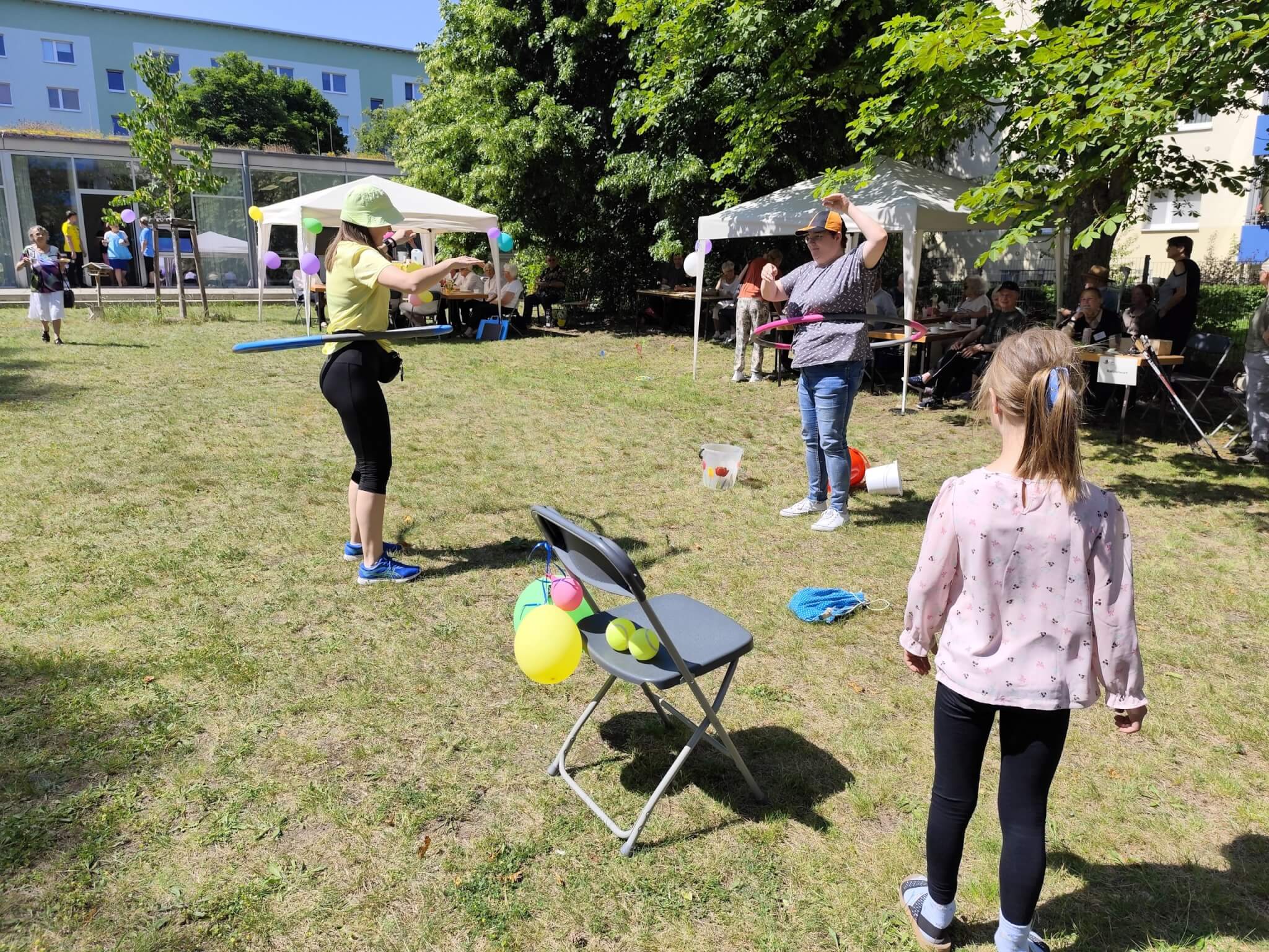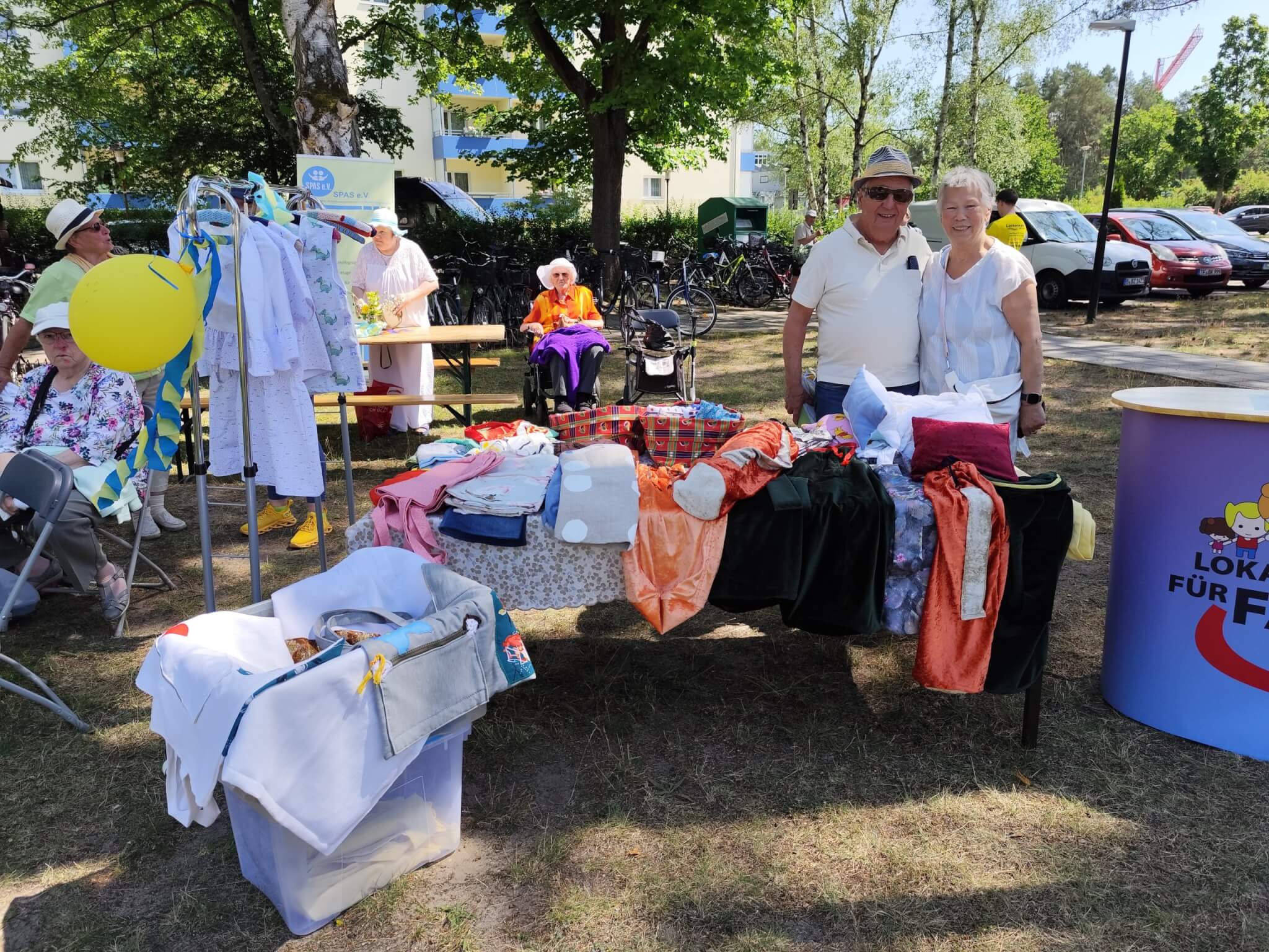 Zahlreiche Vereine und Initiativen aus Ludwigsfelde präsentierten stolz ihre Arbeit und luden zum Gespräch ein. Es war eine gute Gelegenheit, um Kontakte zu knüpfen, lokale Angebote kennenzulernen und sich inspirieren zu lassen. Besonders die vielfältigen Darbietungen sorgten für Begeisterung: Die Gruppe „Drums Alive“ der Parkinson Selbsthilfe Ludwigsfelde mit ihrem Gruppenleiter Bodo Fröhndrich und Trainer Kaushik Gosai brachte rhythmisches Trommeln auf die Wiese. Die Selbsthilfegruppe „Tanz und Bewegung gegen den Schmerz“, bekannt als Tanzmariechen, unter Leitung von Wenke Pedro begeisterte mit unterschiedlichen Tänzen.