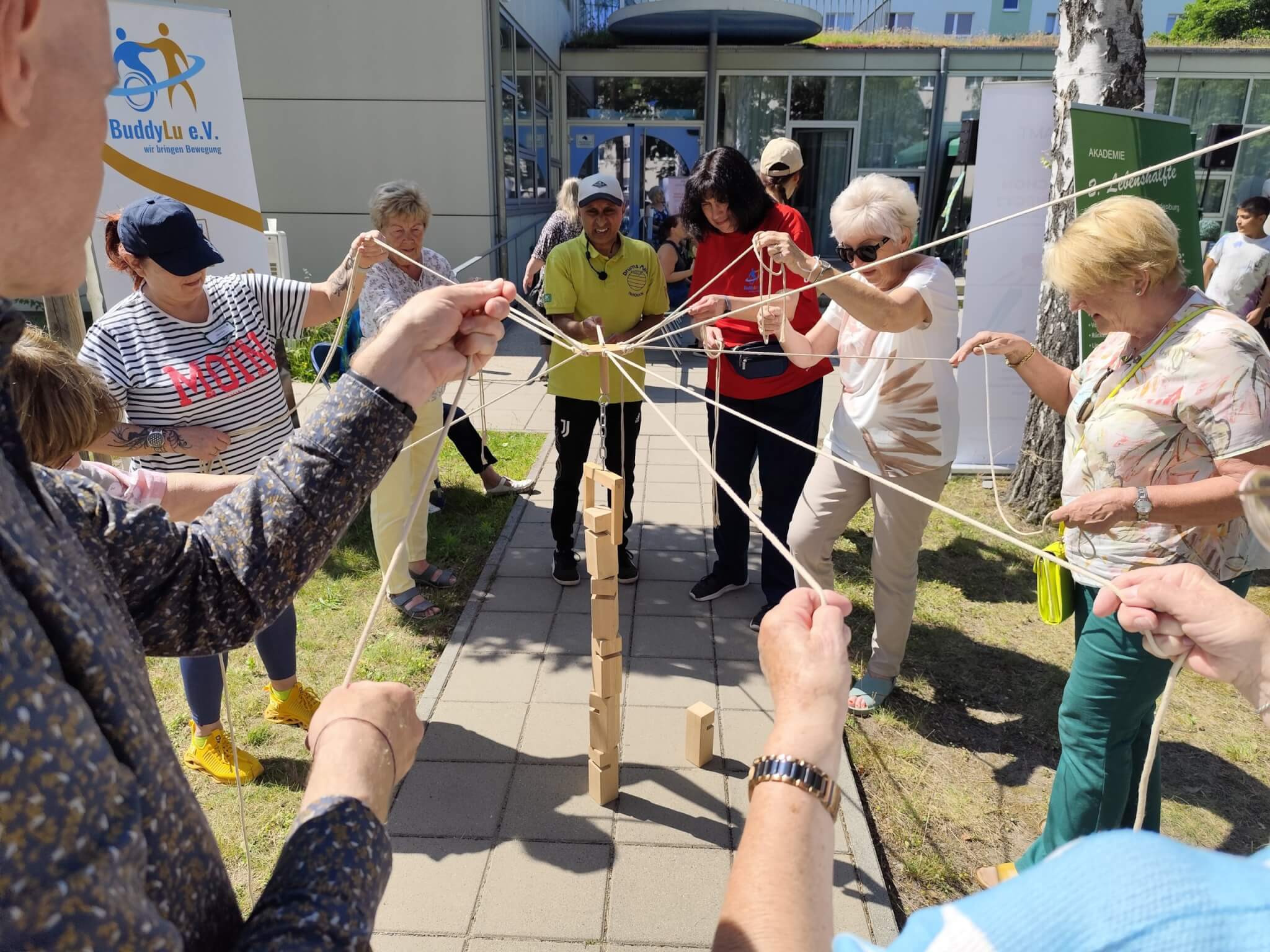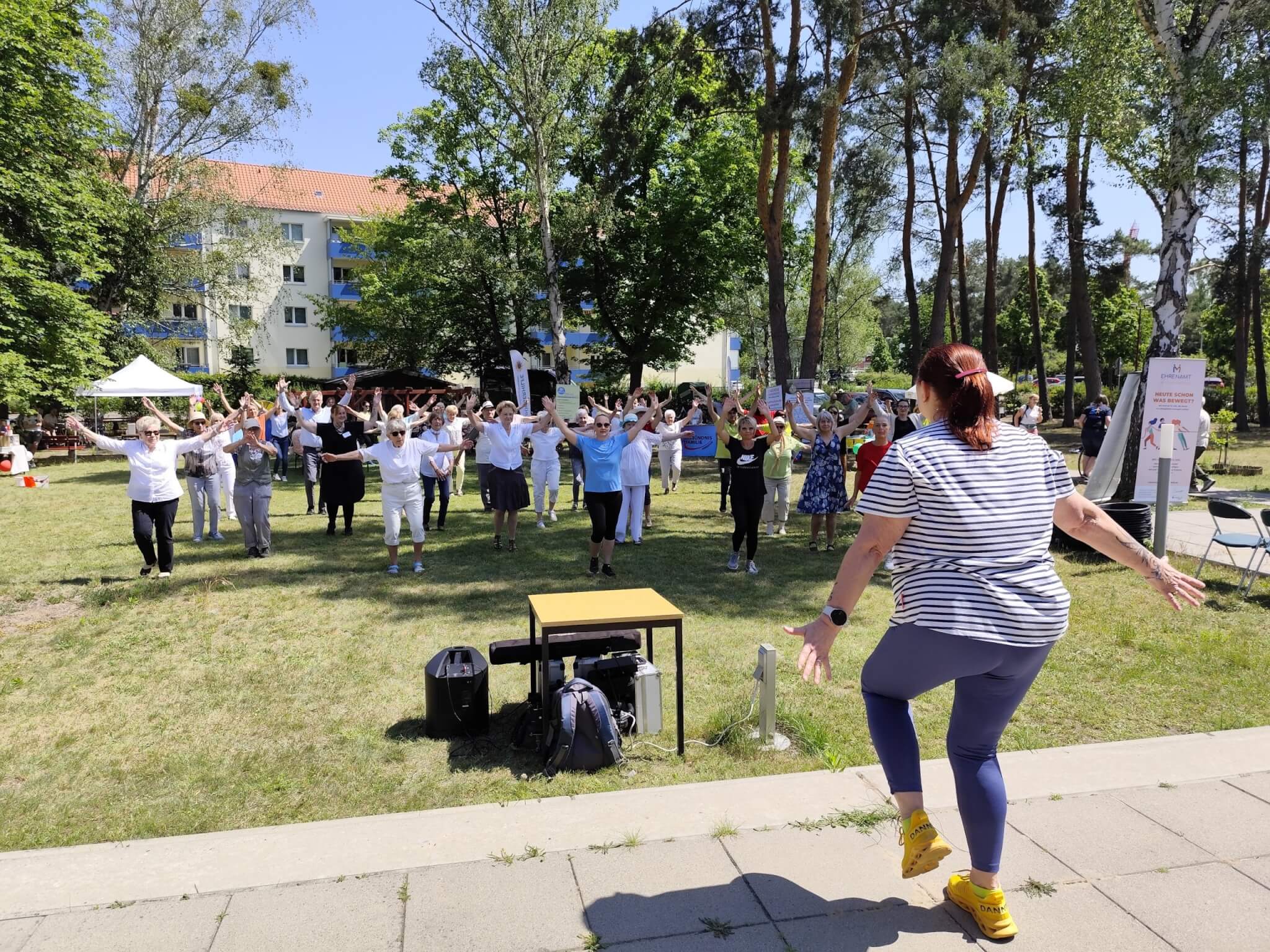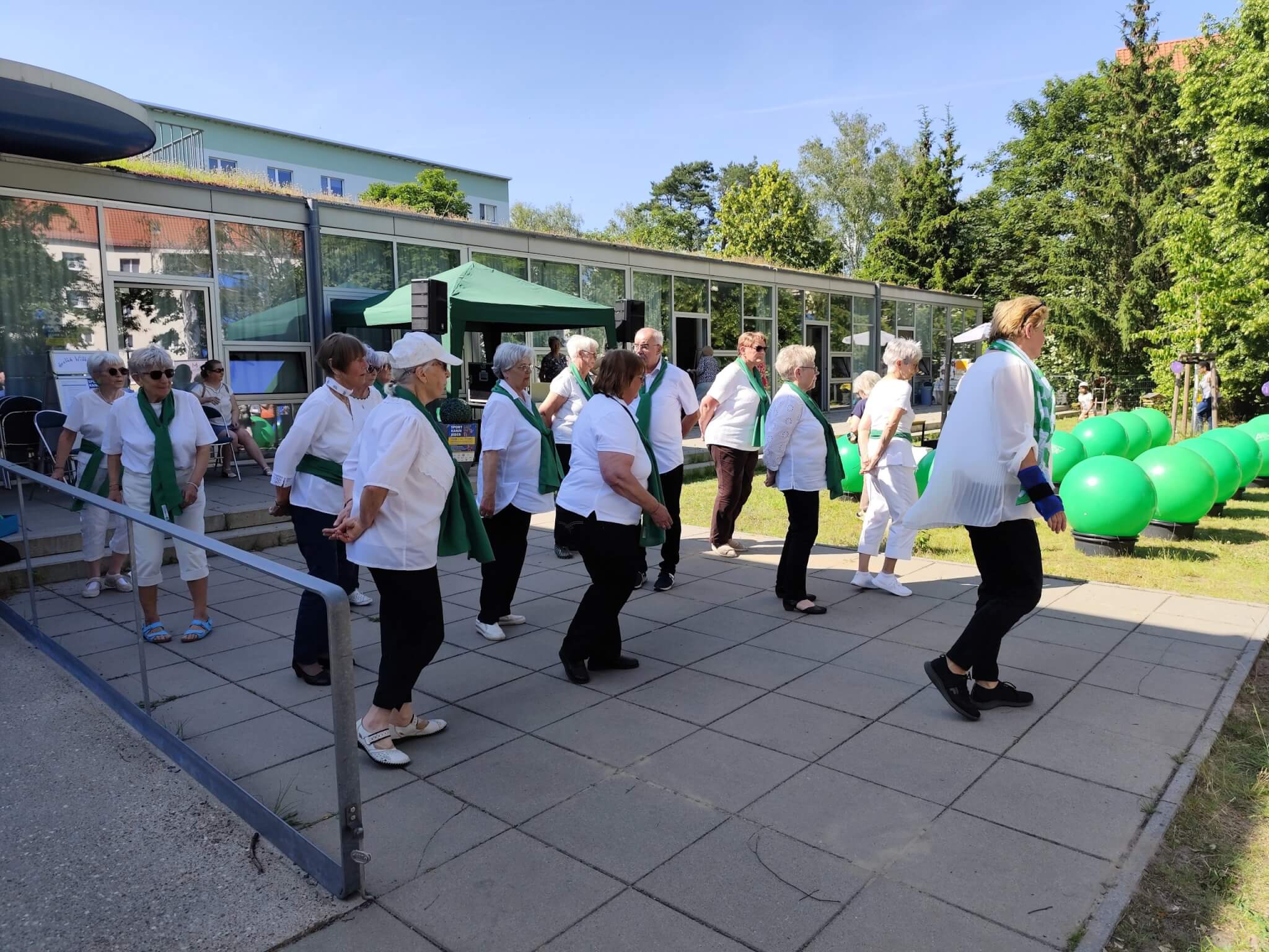 Die Kleinsten des Märkischen Kinderdorf e.V. erwärmten die Herzen der Anwesenden, während die „Gesundheitsbuddies“ des BuddyLu e.V. mit ihrem neu einstudierten Rollatortanz die Zuschauerinnen und Zuschauer zum Staunen und Mitmachen einluden. Die engagierte Seniorin Jutta Wolf und ihre Senioren-Sportgruppe Nord sowie die kreative Tanzgruppe „Lady fit“ des SPAS e.V. sorgten für energiegeladene Momente voller Lebensfreude.