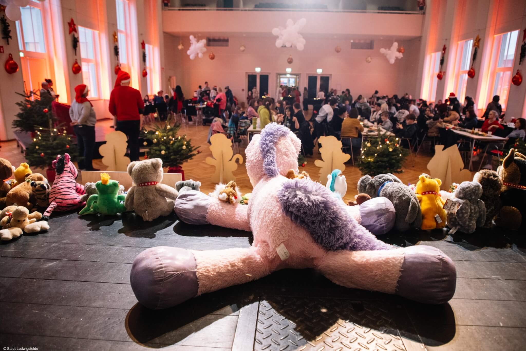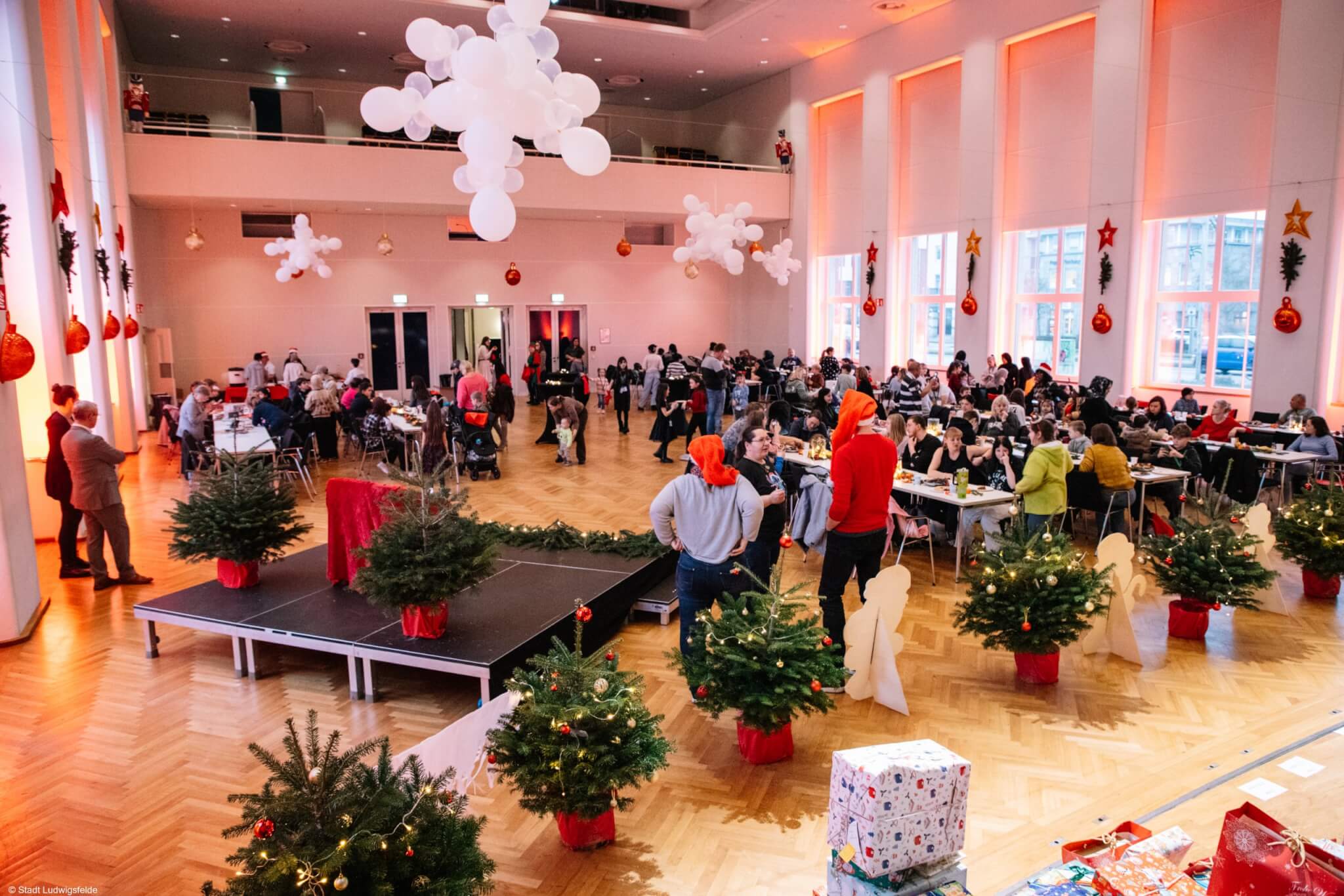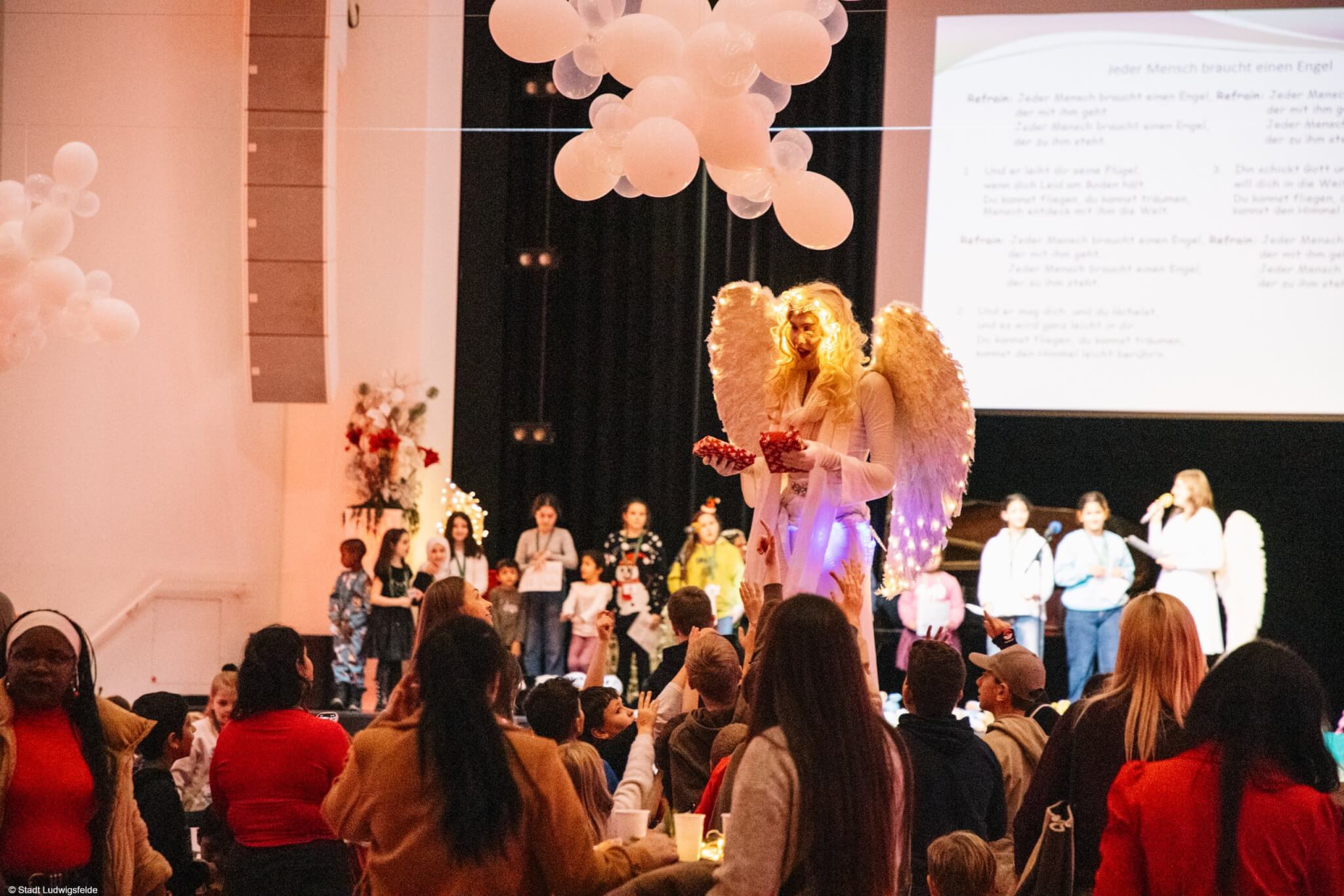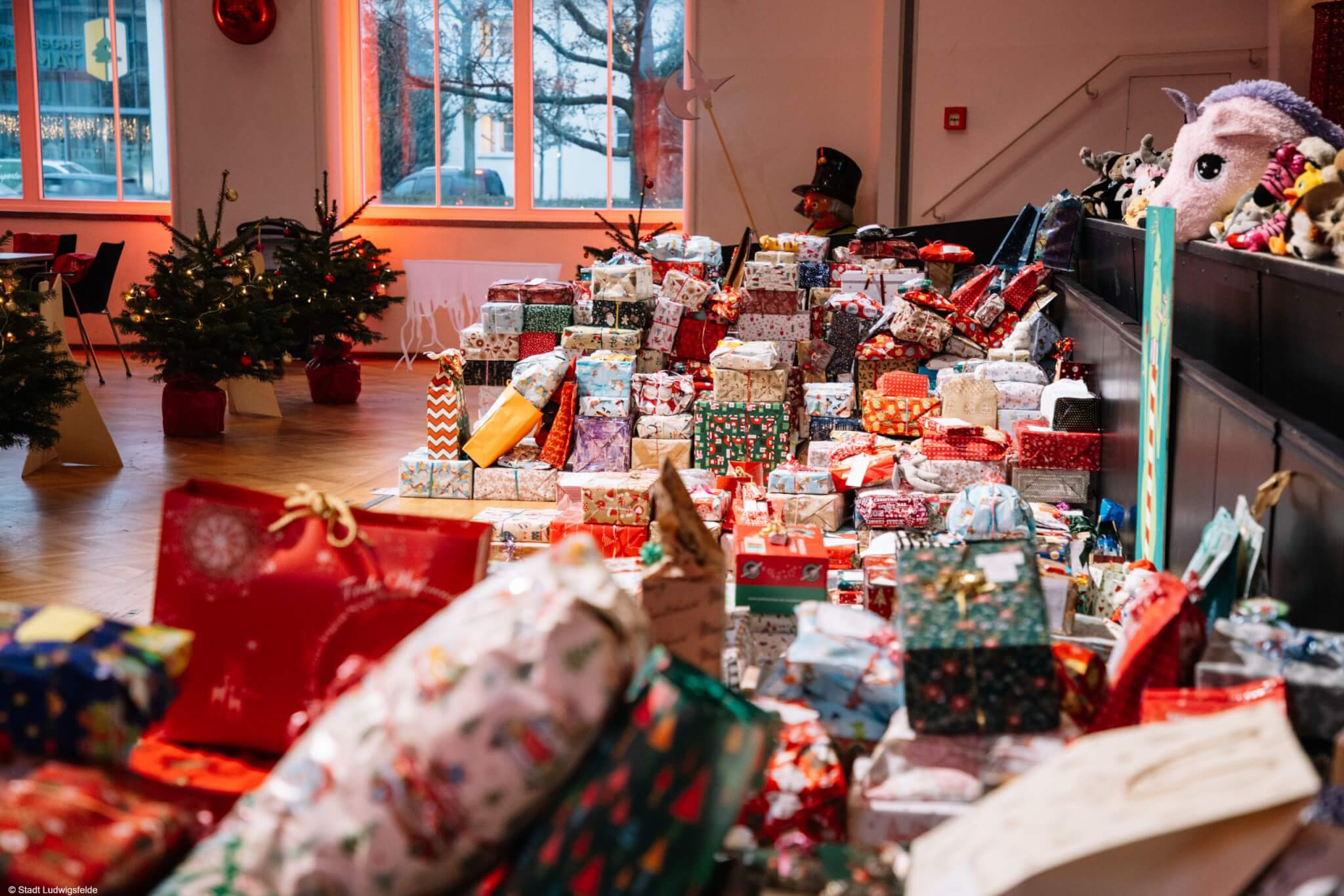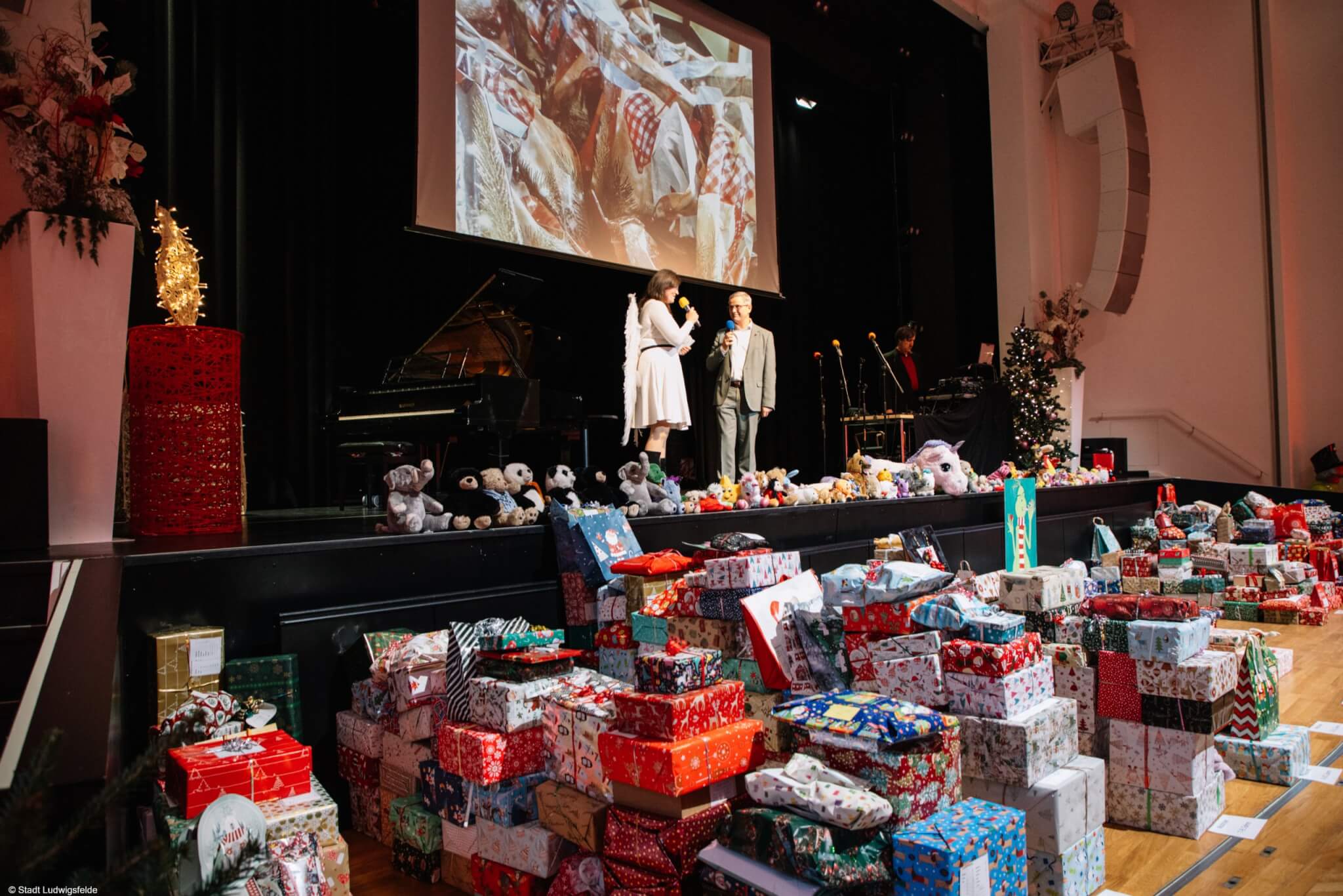 Bei der diesjährigen Weihnachtsengel-Feier der Ludwigsfelder Weihnachtsengel im Klubhaus wurden mehr als 400 von Bürgerinnen und Bürgern gepackte Weihnachtsgeschenke an über 200 sozial benachteiligte Kinder verteilt.