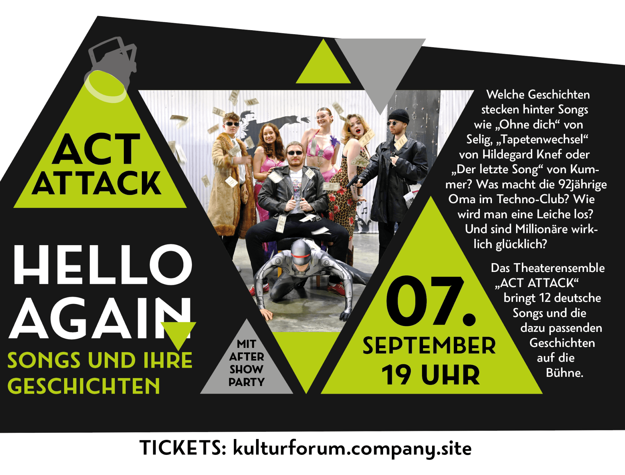 Das Theaterensemble "Act Attack" bringt 12 deutsche Songs und die passenden Geschichten auf die Bühne.