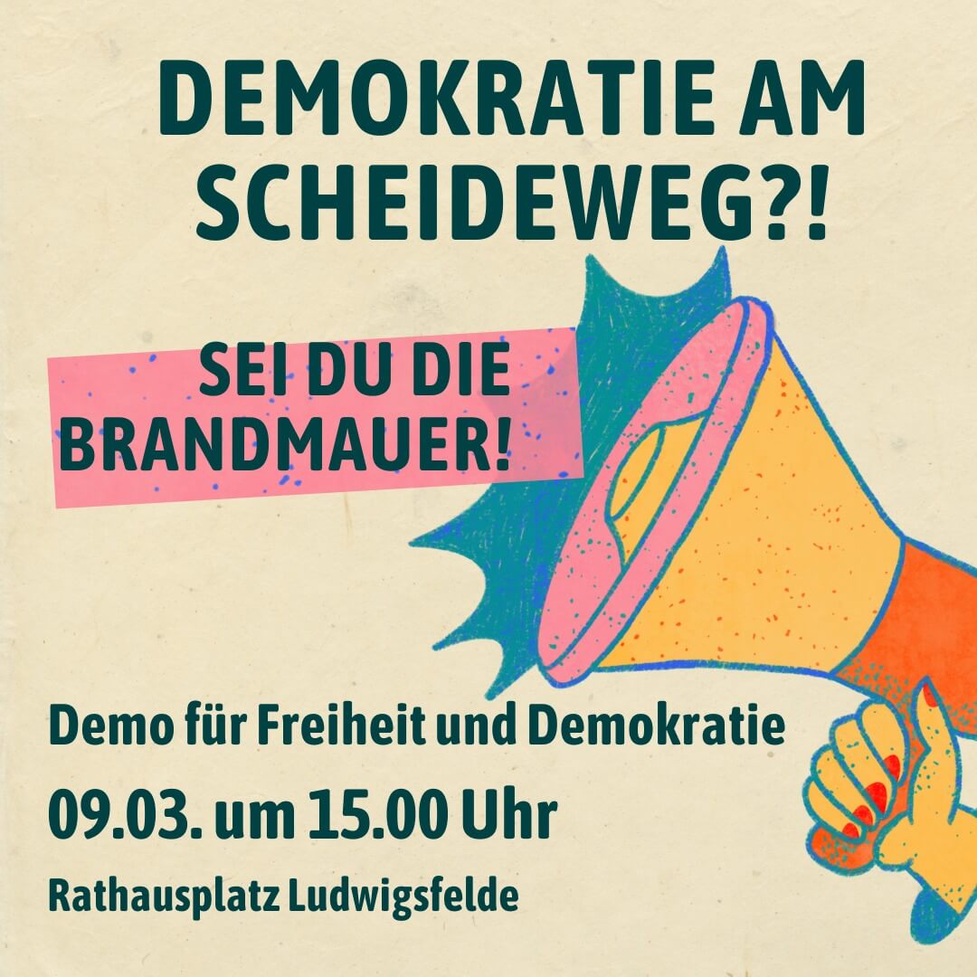 Hunderttausende sind in den vergangenen Wochen bereits auf die Straßen gegangen, um für Freiheit und Demokratie in Deutschland zu demonstrieren. Auch in Ludwigsfelde wird es nun eine privat organisierte Demonstration geben. Verschiedene Vertreter aus Politik und Gesellschaft werden dabei zu Wort kommen und Reden halten.