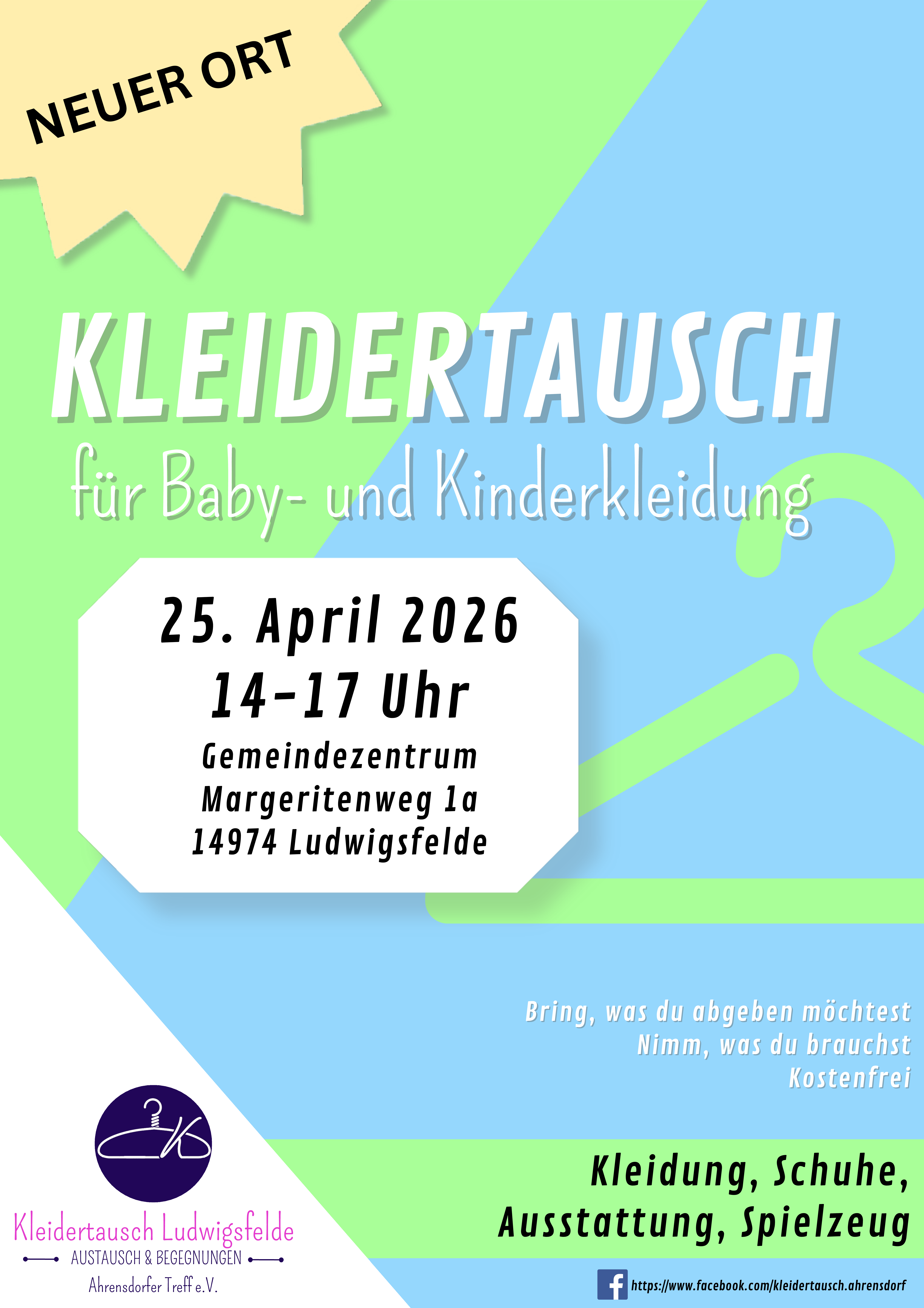Bringt mit, was eure Kinder nicht mehr brauchen – Kleidung, Spielzeug oder Zubehör – und nehmt einfach mit, was euch aktuell fehlt.