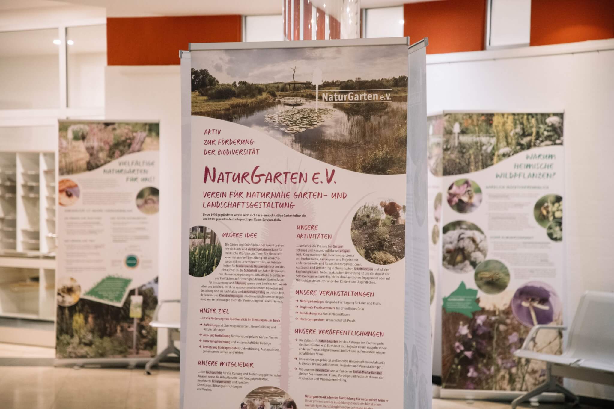 Unter dem Titel „Vielfältige Naturgärten für uns! – Biodiversität als Lebensgrundlage“ verbindet die Ausstellung großformatige Fotografien mit anschaulich aufbereitetem Wissen. Besucherinnen und Besucher erfahren, warum Naturgärten nicht nur ästhetisch ansprechend sind, sondern eine entscheidende Rolle für den Erhalt der biologischen Vielfalt spielen. Im Fokus stehen dabei unter anderem die Bedeutung heimischer Pflanzen, die Schaffung von Lebensräumen für Insekten und Vögel sowie nachhaltige Formen der Gartengestaltung.