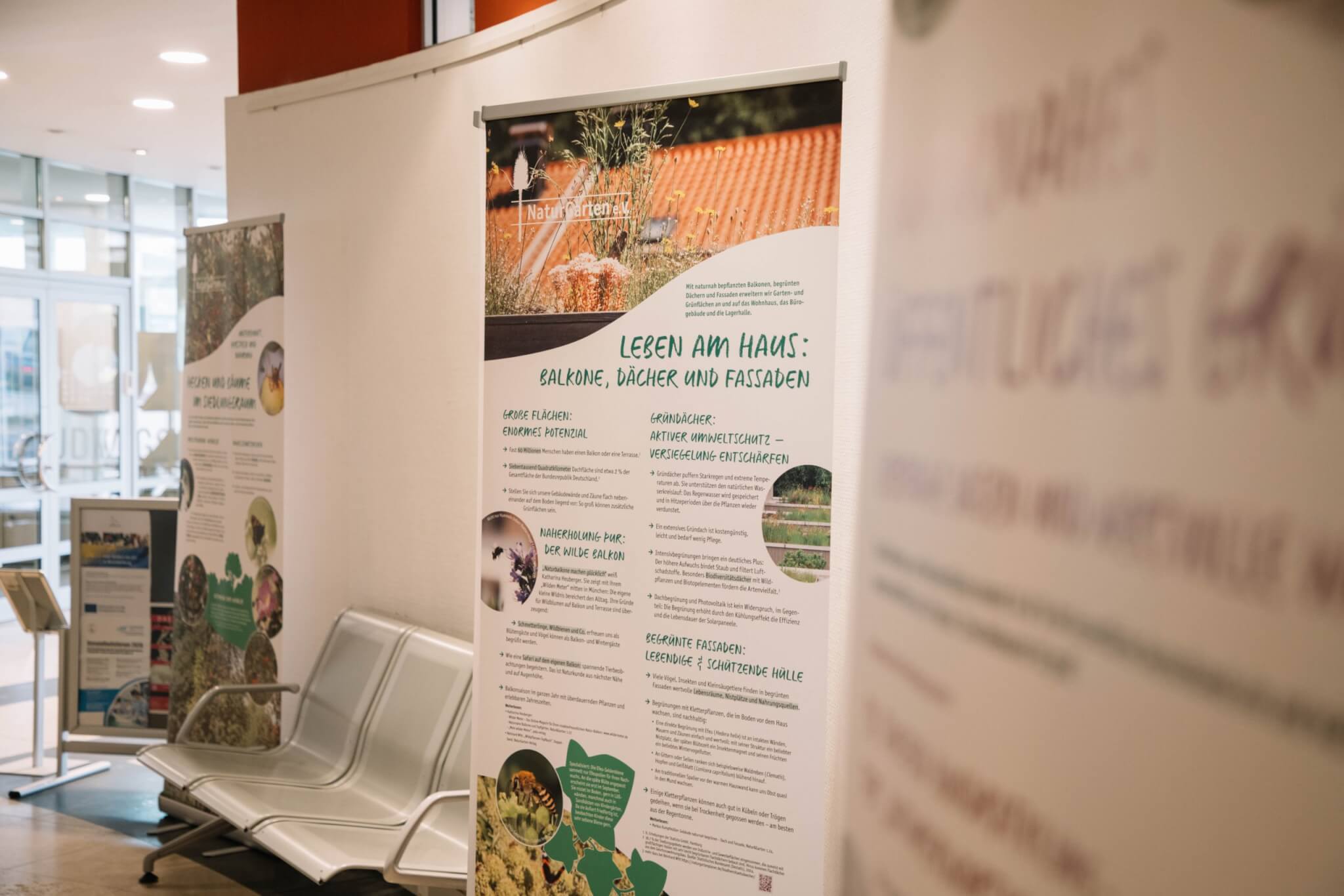 Die Ausstellung beleuchtet verschiedene Aspekte des Naturgartenkonzepts: Von der Anlage und Pflege eines Naturgartens über die Rolle von Wiesen, Hecken und Bäumen bis hin zu naturnah gestalteten Balkonen, Dächern und öffentlichen Grünflächen. Auch Strukturelemente wie Totholz, Wasserflächen oder Trockenmauern werden als wertvolle Lebensräume vorgestellt. Die Ausstellung liefert dabei praktische Hinweise und Hintergrundwissen für alle, die selbst aktiv werden möchten.