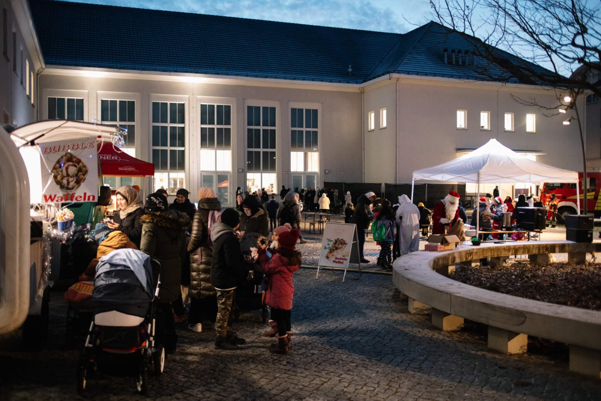 Wie auf einem Weihnachtsmarkt duftete es nach Waffeln und Popcorn, die Kinder konnten basteln oder sich im Weihnachtskugel-Lauf miteinander messen. Beim Kinderschminken landeten weihnachtliche Motive auf Gesicht oder Hand und im Erzählzelt wurde eine lustige Weihnachtsgeschichte zusammen gestaltet oder knifflige Kuchenrätsel gelöst. (z.B. Was ist ein holziges Gebäck?) Natürlich fehlte auch das Riesen-Jenga nicht und die Freiwillige Feuerwehr Ahrensdorf war mit einem Fahrzeug zur Stelle, das erkundet werden durfte. Überall gab es kleine Preise zu gewinnen – und natürlich war alles für die Kinder kostenfrei.